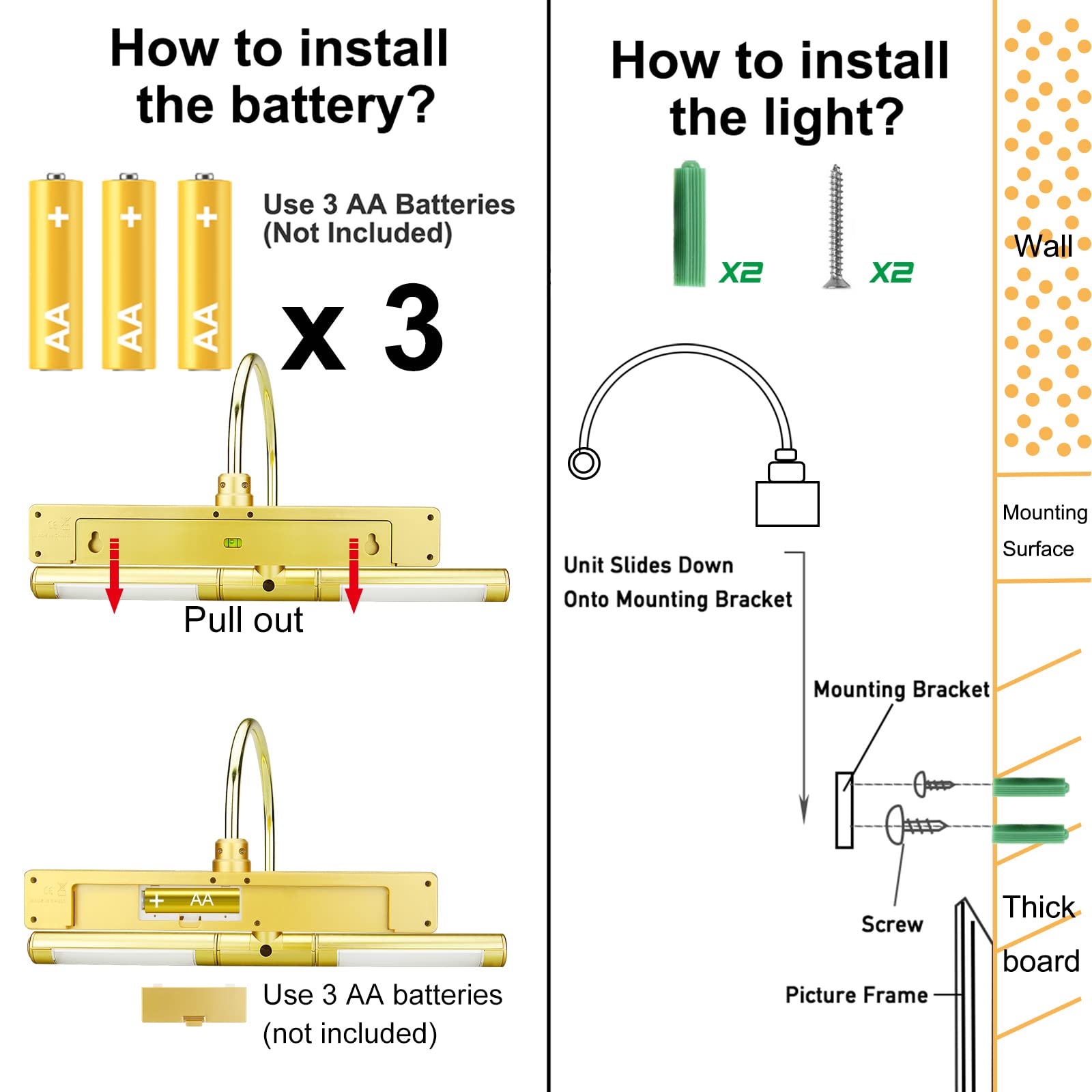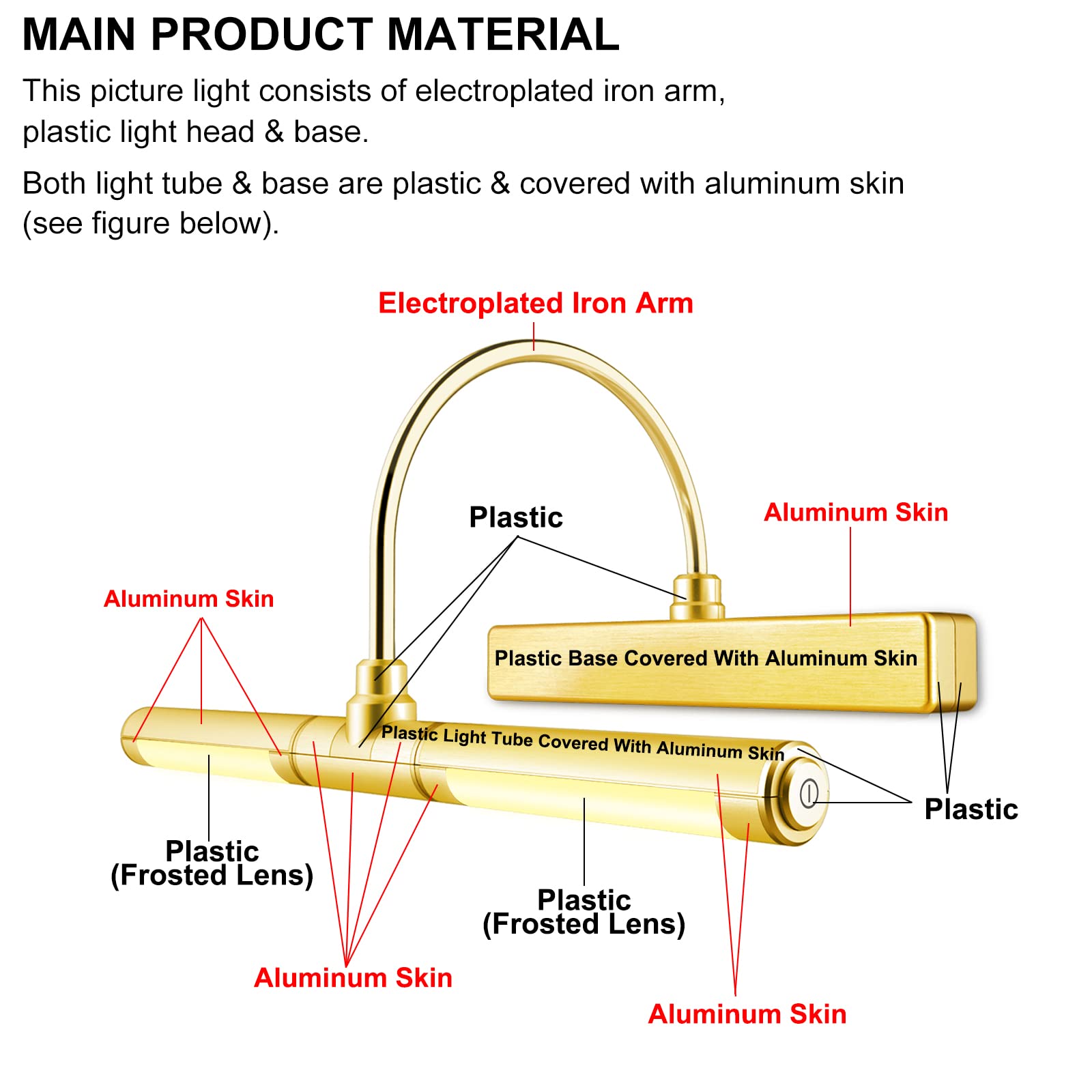 Details: Please Kindly Note :Picture Light Color is A Little Orange Gold, Which is Suitable for Lighting Up Your Gold and Copper of Picture Frame .And It's Made of Plastic and Aluminum to Make it More Flexible to Rotate Light Head.Please feel free to contact us if you have any question.