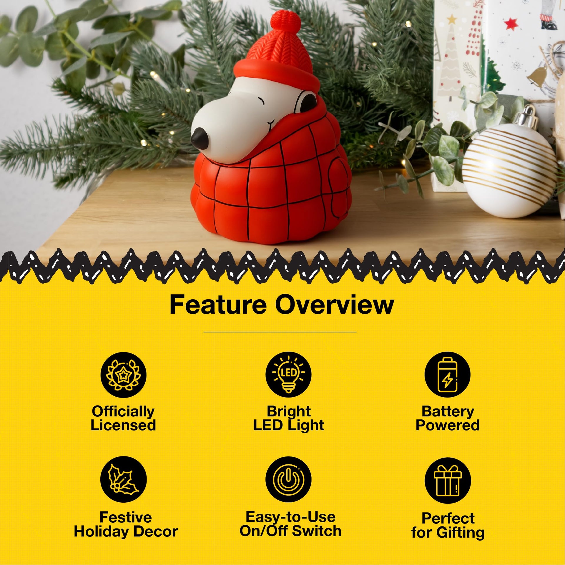 Mark Feldstein, Peanuts Snoopy Puffer Jacket LED Illuminated Resin Tabletop Light, Red, 6 Inch