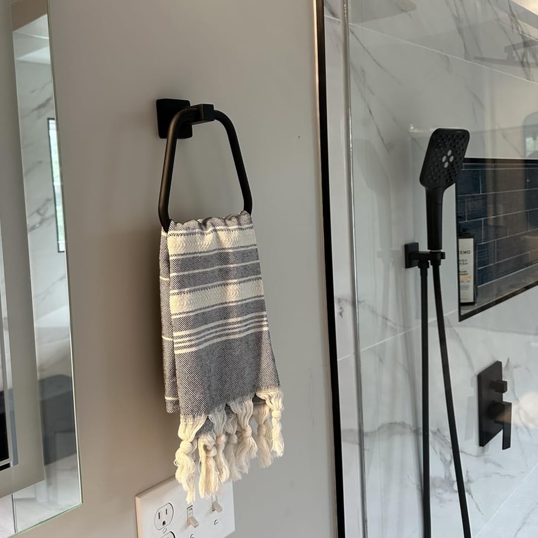 Matte Black Towel Ring for Bathroom, Kitchen Bath Towel Holder Hangers Wall Mount Heavy Duty Stainless Steel