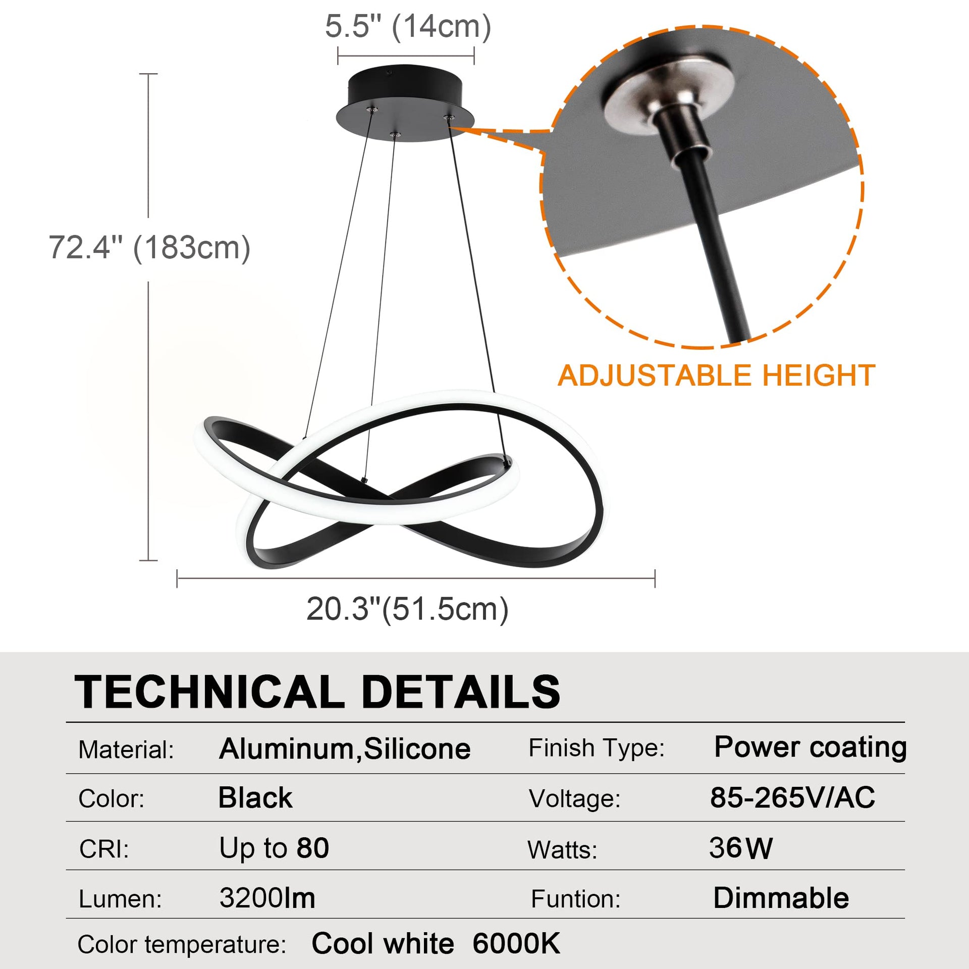 MAYNA Modern LED Pendant Light, Irregular Ring Chandelier, Adjustable Contemporary Fixture for Dining, Kitchen, Living Room, Bedroom, 6000K
