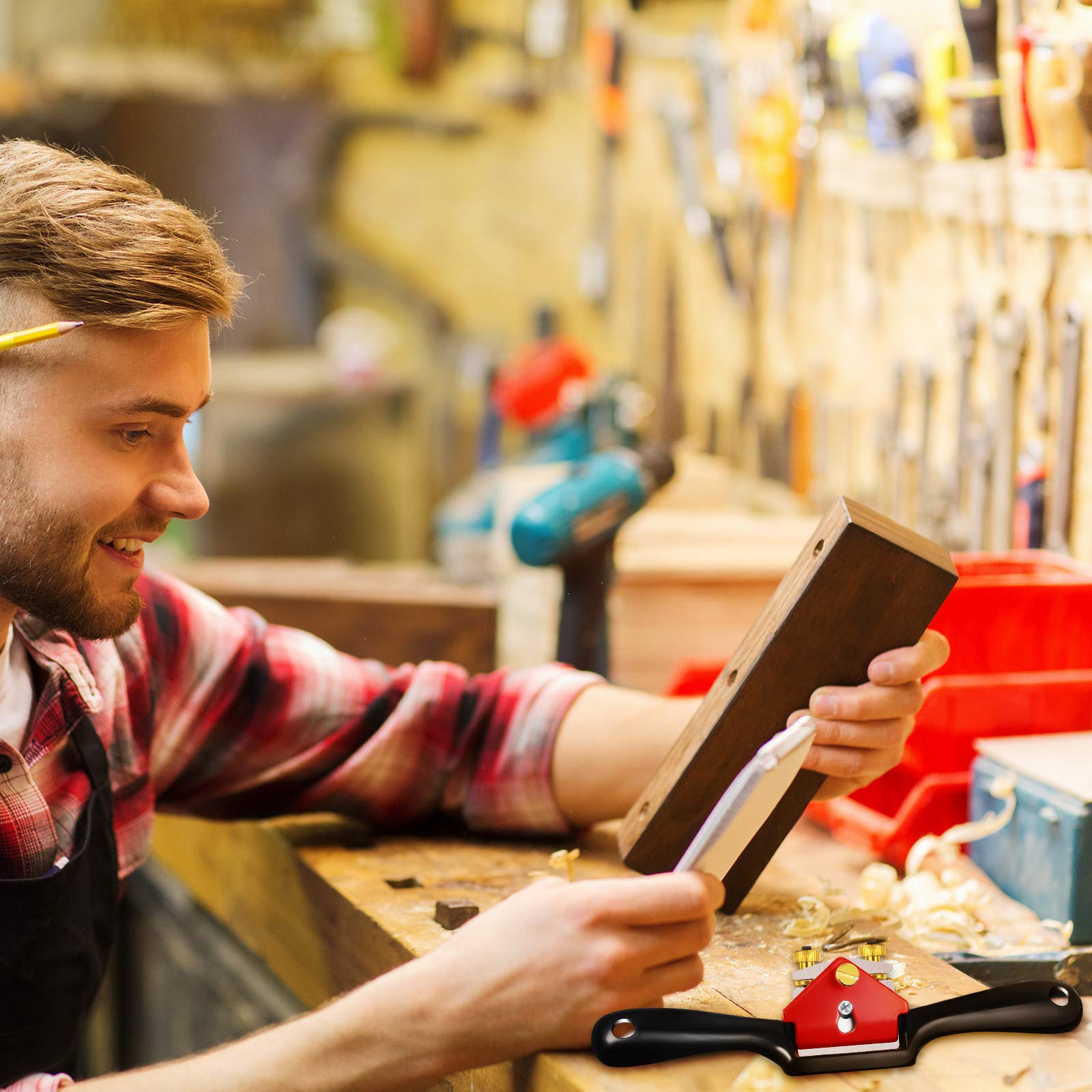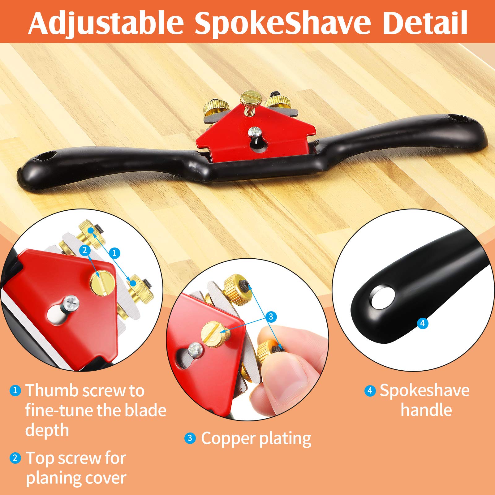 Minatee Adjustable Spokeshave with Flat Base and 5 Metal Blade Smooth Planes Working Hand Tool for Wooden Craft Carver Wood Working