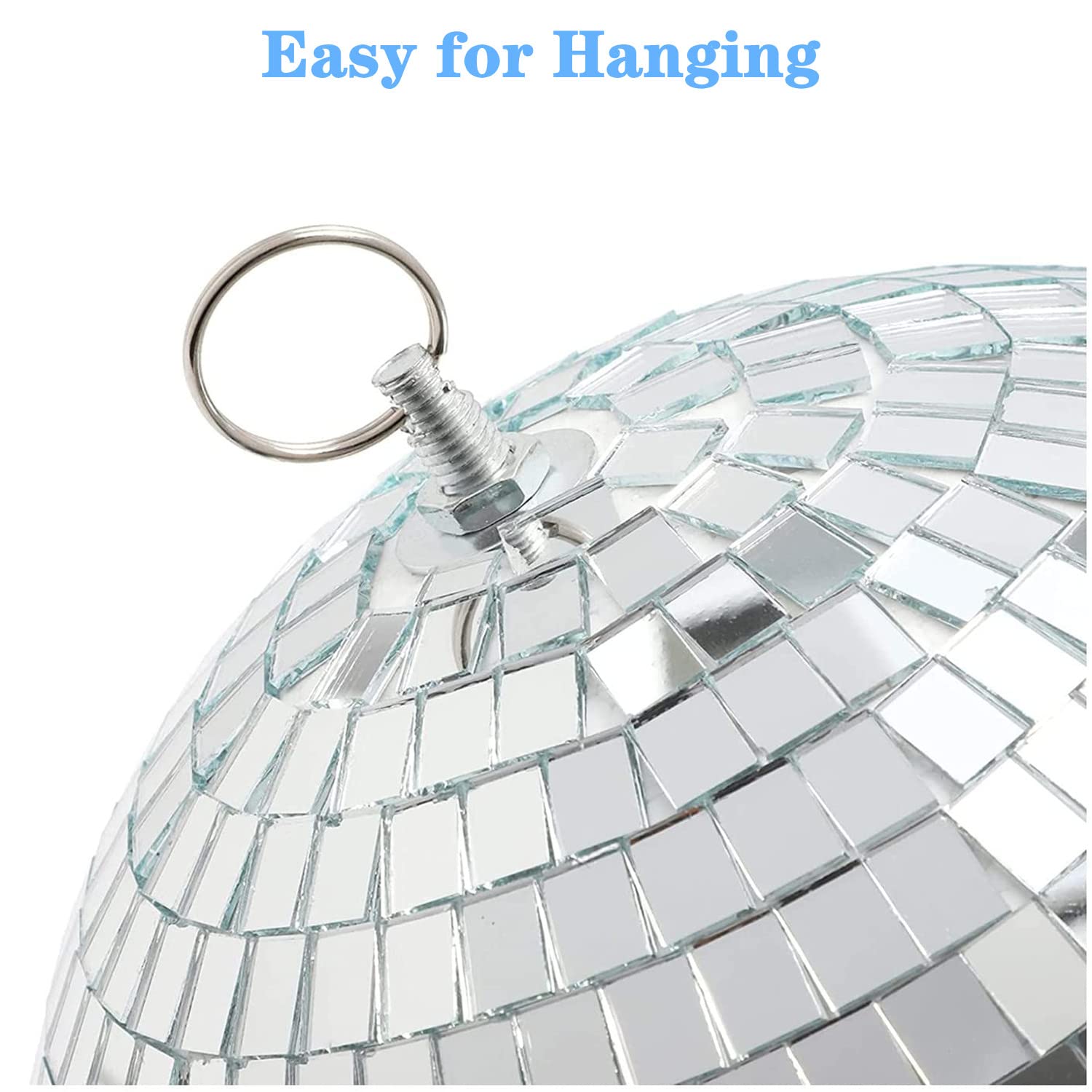 Mirror Disco Ball 8 Inch Hanging Disco Ball for Party Wedding Holiday Home Decoration, Silver