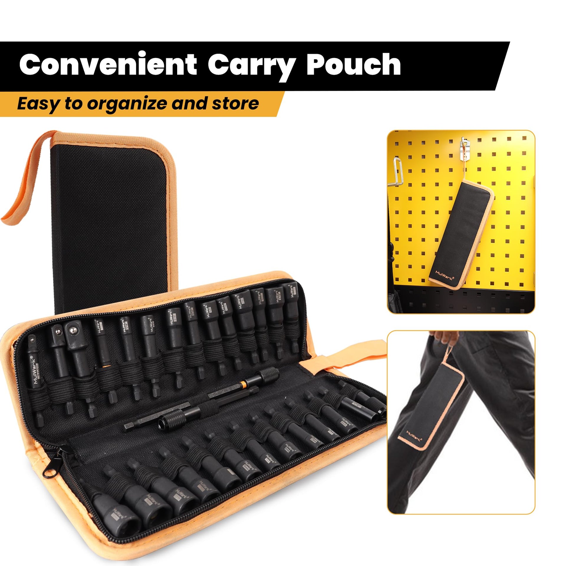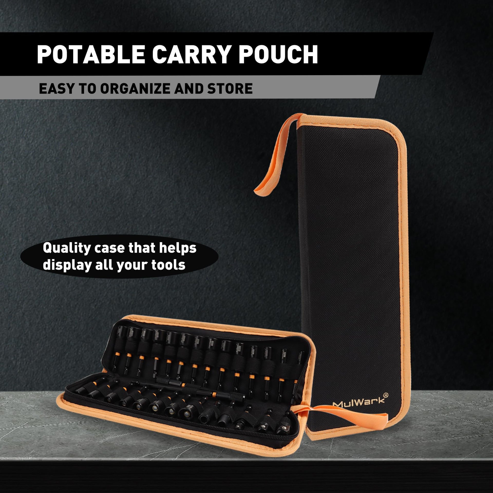 MulWark 29-Piece Magnetic Nut Driver Set, SAE & Metric Impact Drill Socket Adapters with Bit Holder, Quick-Release Extension & Storage Bag