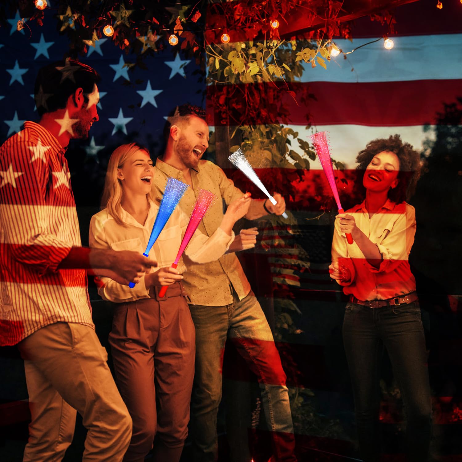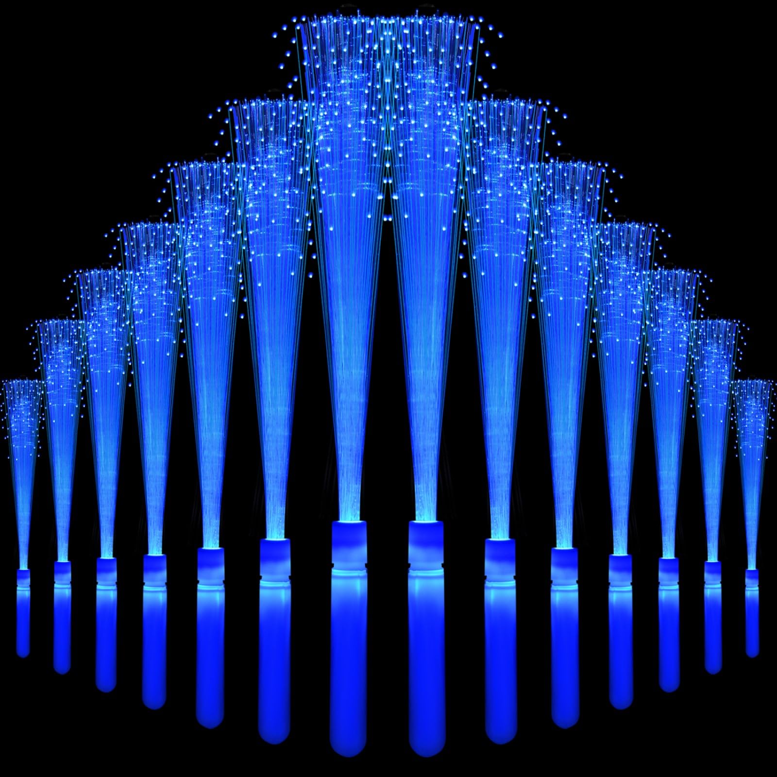 - Glow Fiber Wands: You will get 24 pieces of blue light fiber optic wands. Each light up toys can bright enough to attract anyone's sights, you can have fun with your friends at evening party with these colorful flashing wand stick