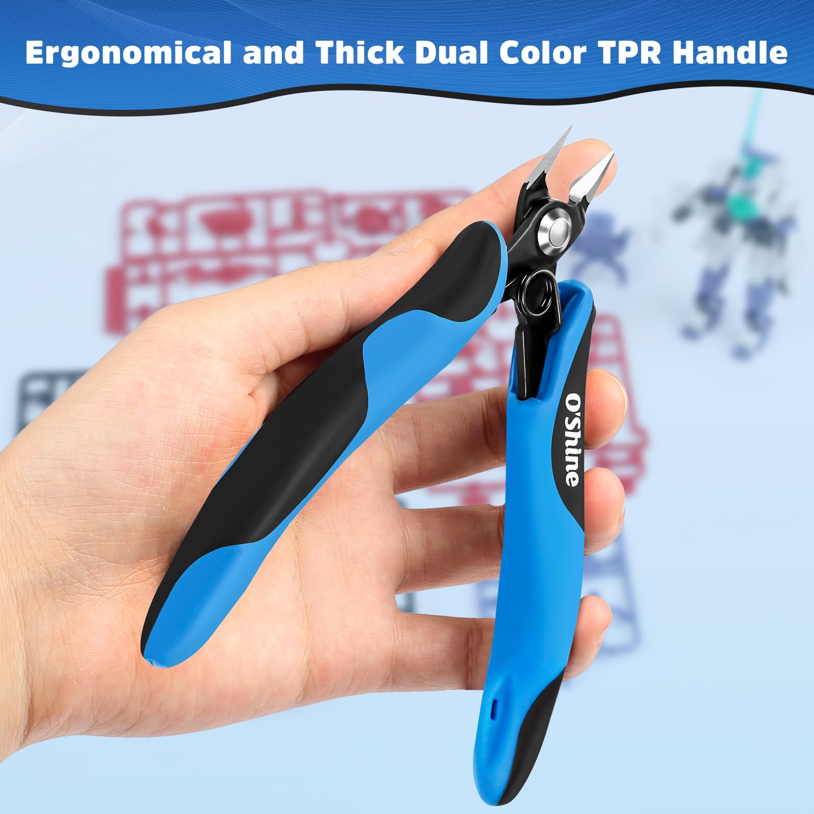 - 【Clean Cut】The blades of OS-018 model clippers are thin, and the back are grounded flat. This allows the model snips to cut into narrow places. The blade back could also better align the edges of the plastic model parts so that the flush can be removed cleanly.