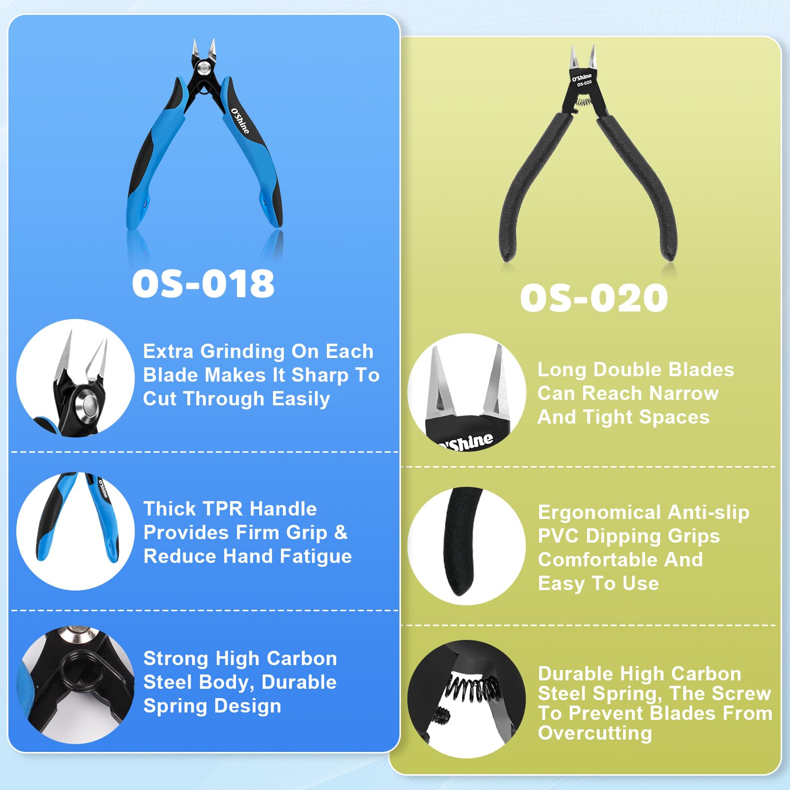 - 【Strong and Durable Structure】The body of O’Shine double-edged sprue cutters OS-018 is made of industrial level SK5 steel, quenched to increase the overall strength, finished with black oxide and anti-rust oil to ensure durability for long-term use.