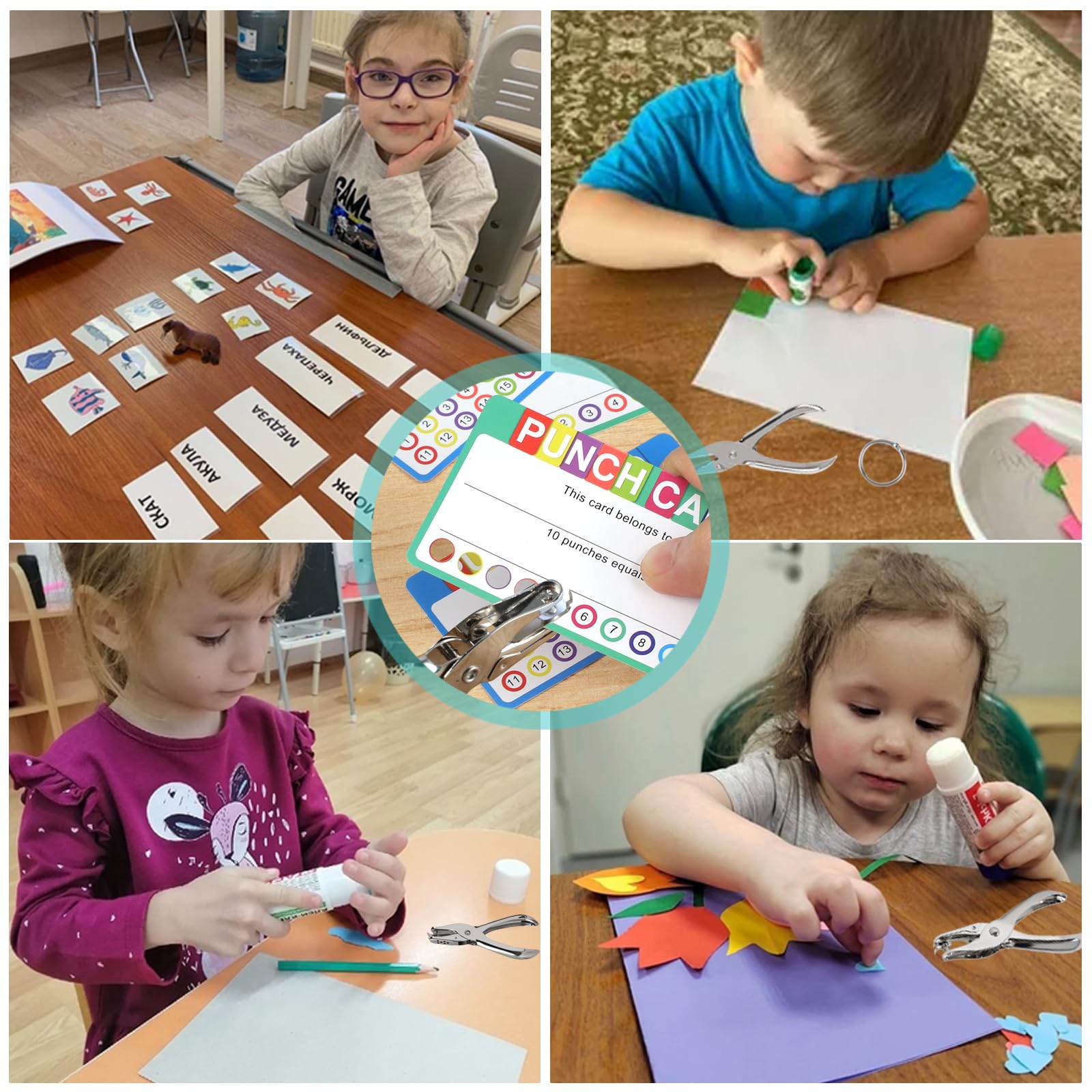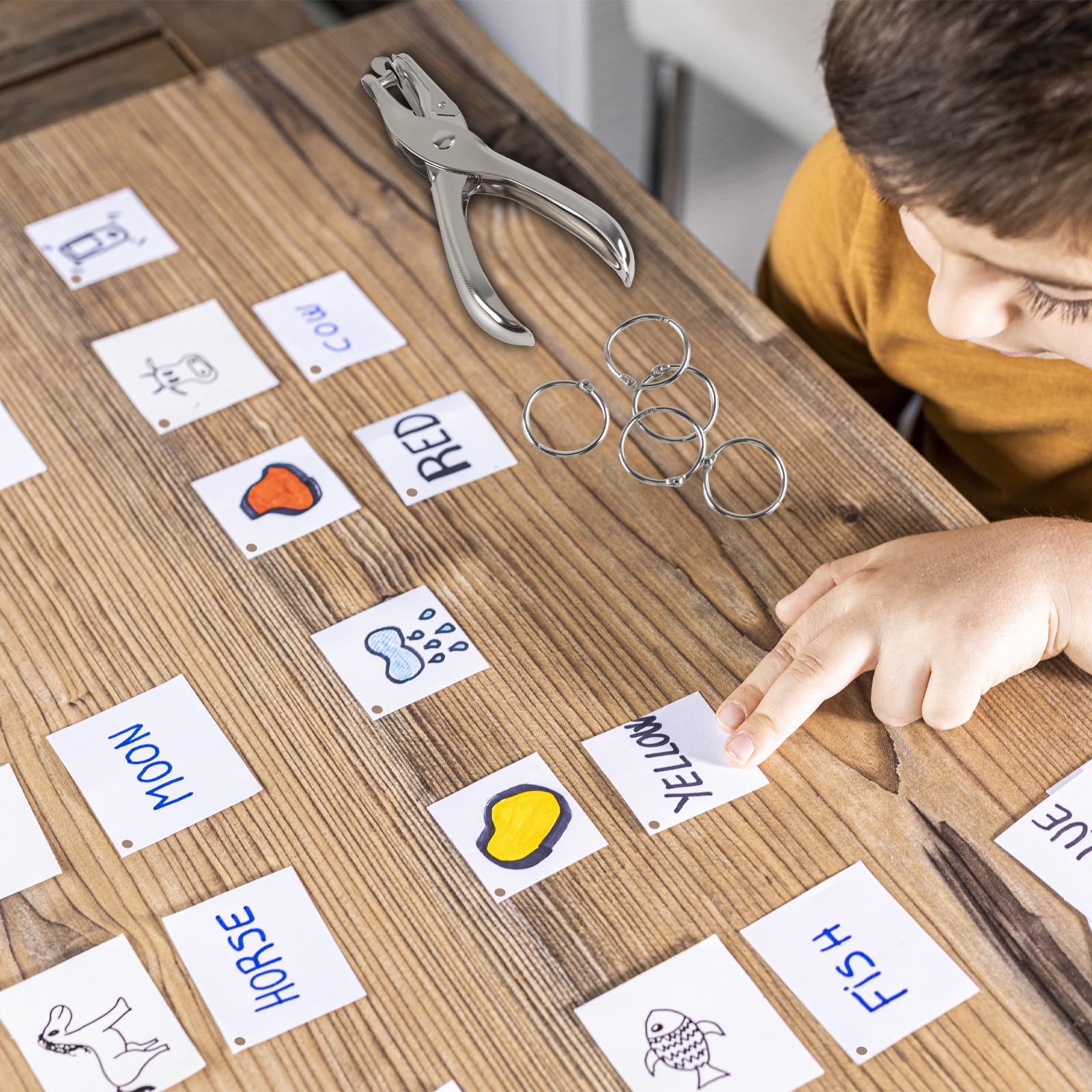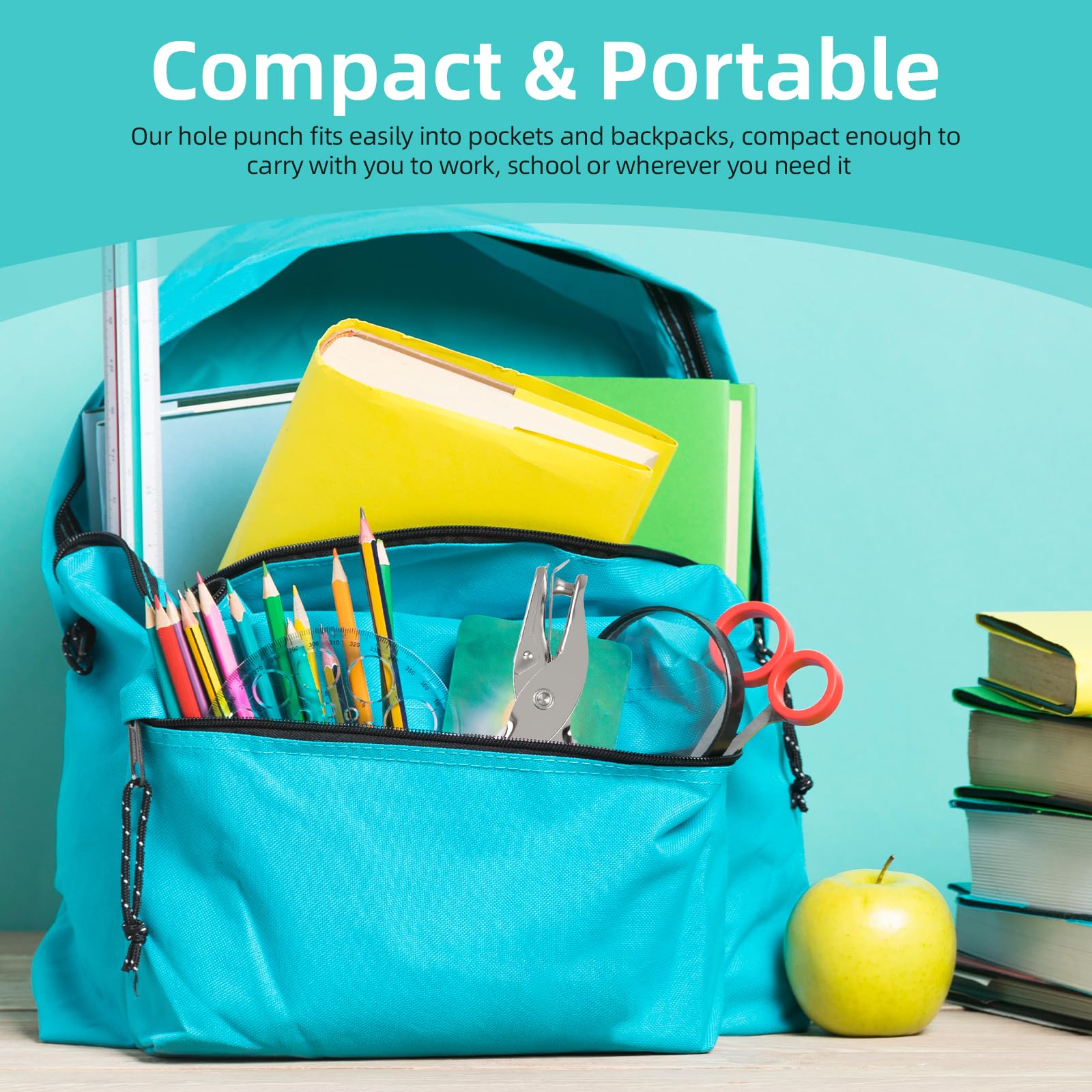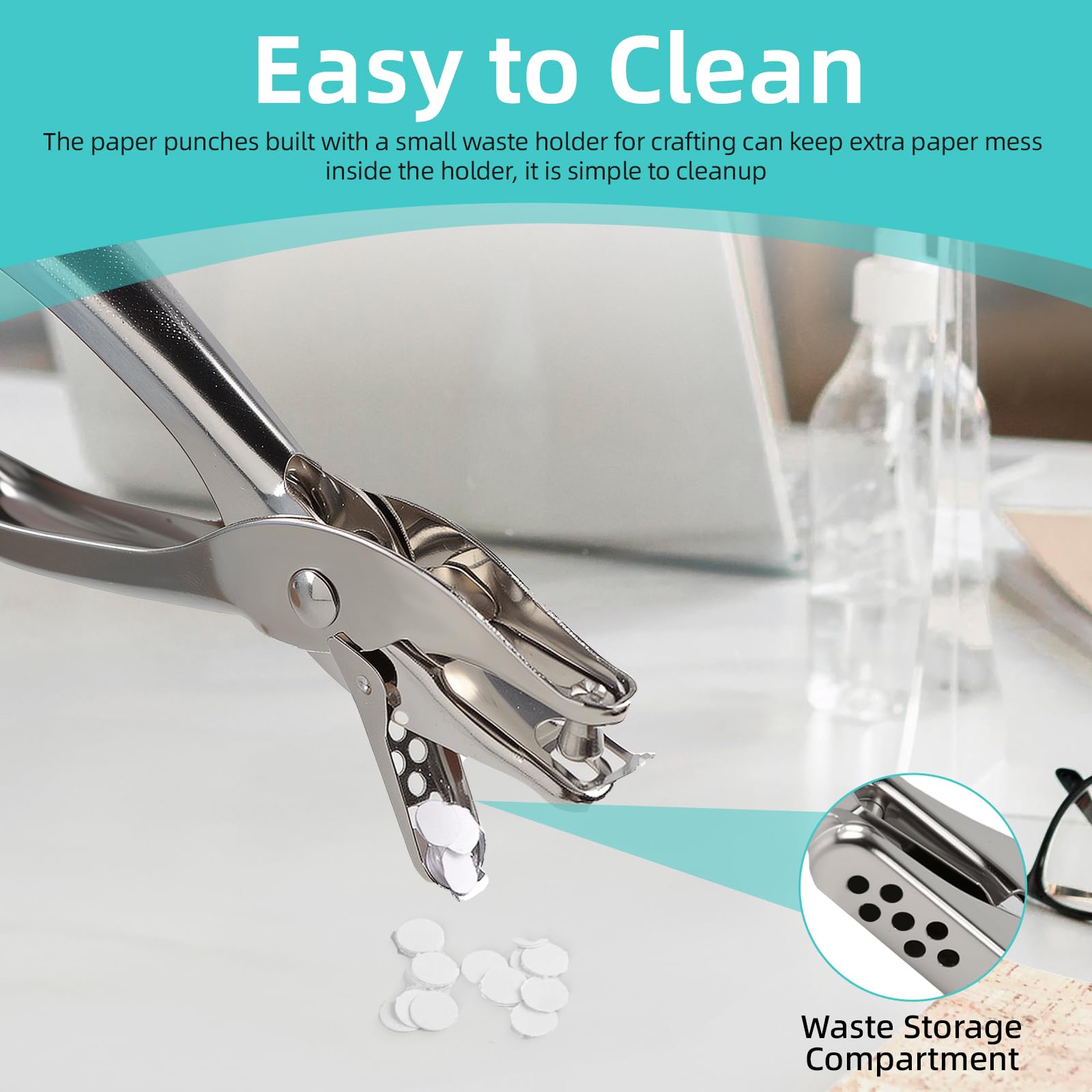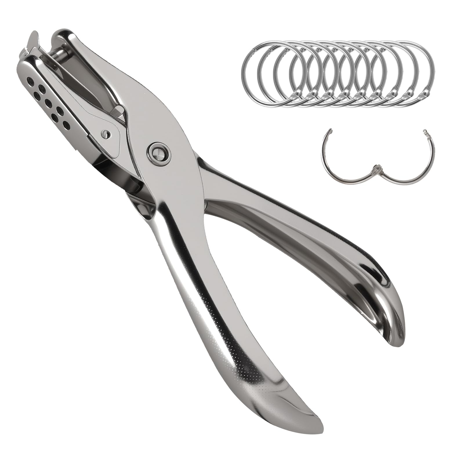 Oligei Single Hole Punch, 8 Sheet Capacity Hole Puncher, Paper Punch with 10P Binder Rings, Hole Puncher for Crafts, Scrapbooks (Silver)