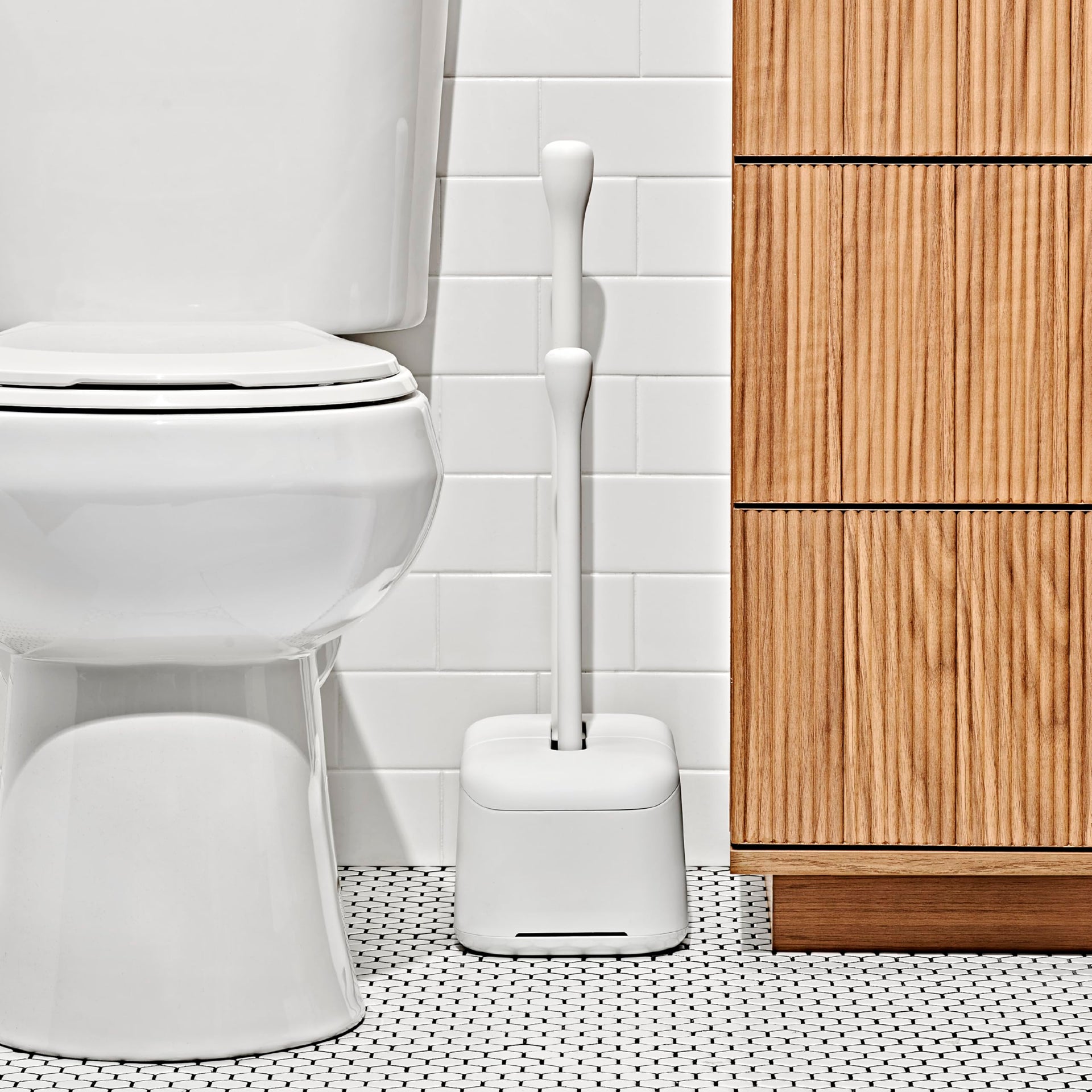 - Keep Bathroom Cleaning Supplies Close Without Compromising on Style: A toilet bowl cleaning brush and a plunger are essential for every bathroom – but who wants to look at them? With the stylish, space-saving canister these supplies are handy but hidden in plain sight.