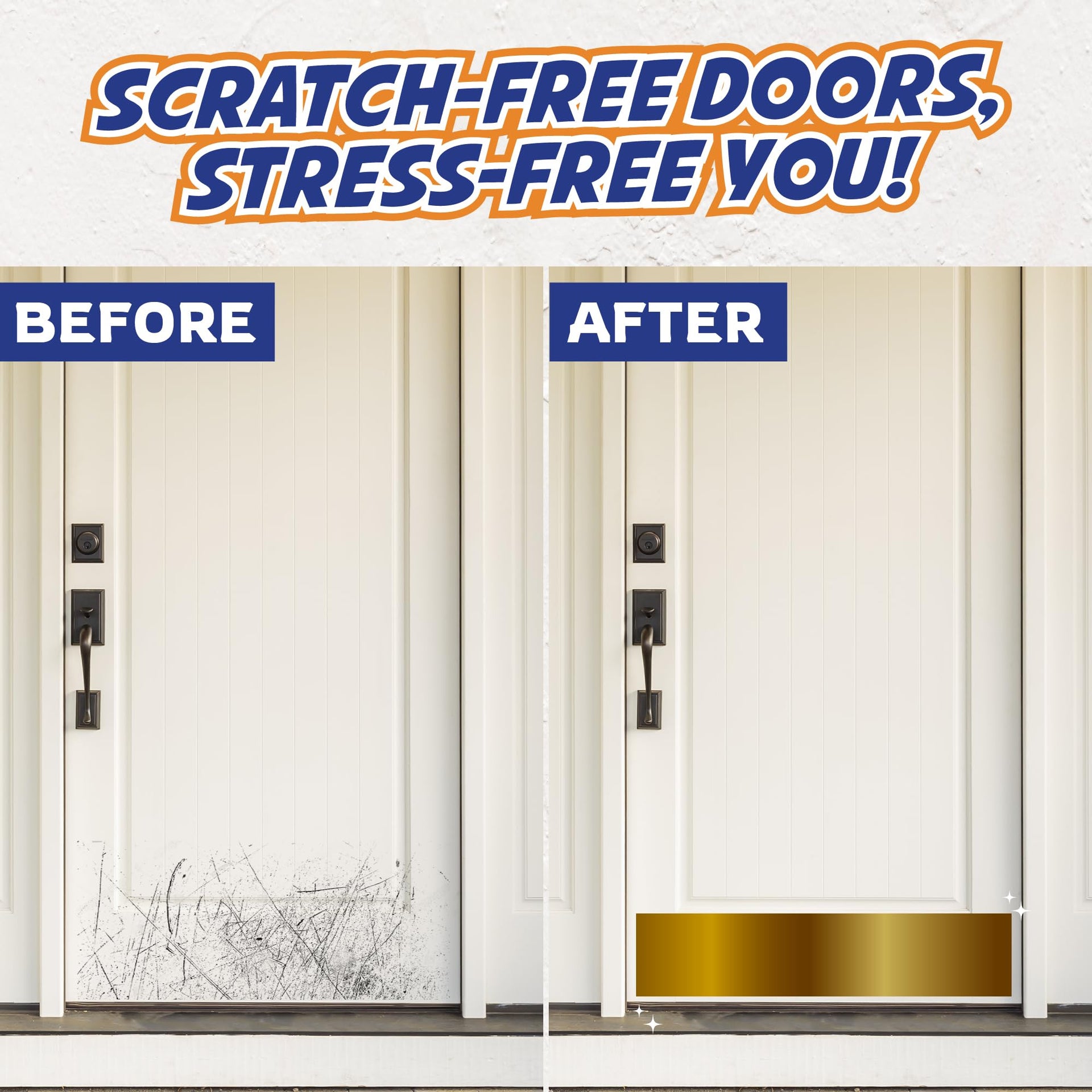 - SCRATCH-FREE DOOR PROTECTION — Made from high-quality, anti-corrosive 1mm thin stainless steel, the kick plate shields your door bottom from pet scratches & footwear impacts, keeping your door scratch-free.