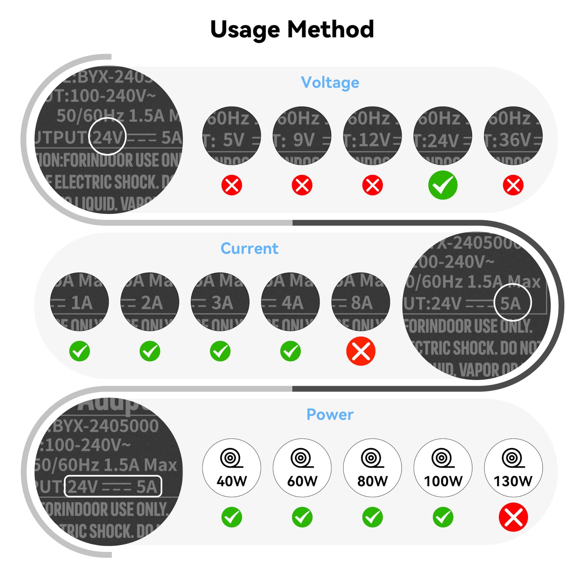 PAUTIX 24V DC Power Supply Adapter 24Volt 5A 120W AC to DC Converter Transformer 100-240V AC Input with 5.5 x 2.1mm US Plug for LED Strip, CCTV Camera