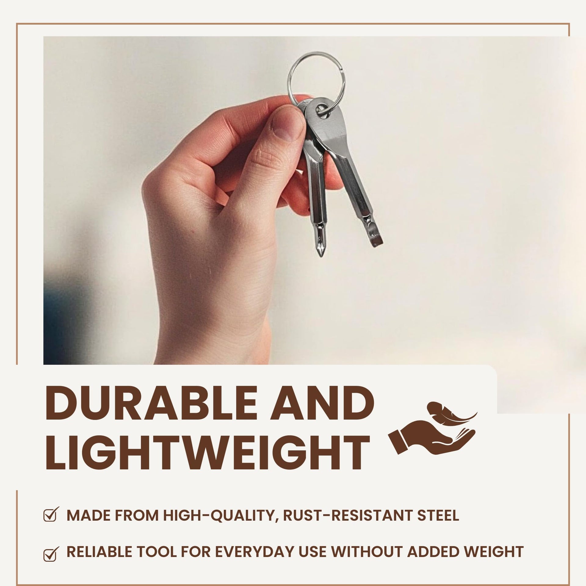 - Durable & lightweight: Made of precision-cast steel, this keychain screwdriver set is durable and rust-resistant. Lightweight and easy to carry, it conveniently fits in your backpack, purse, or pocket, making it the perfect tool for quick repairs anytime.