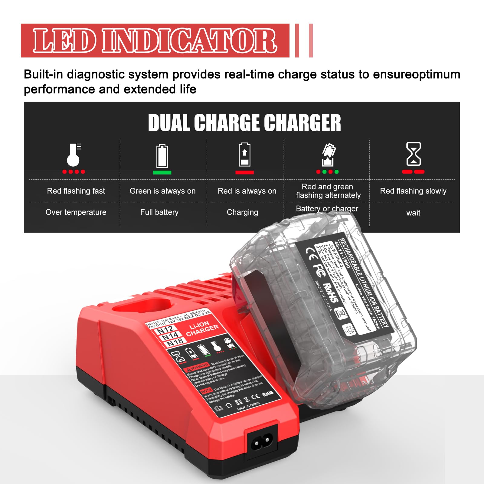 Powilling Rapid Charger Replacement for Milwaukee M-12 M-18 Lithium Ion Battery 48-59-1812 48-11-2420 48-11-1815 48-11-1840 48-11-1841 48-11-1850