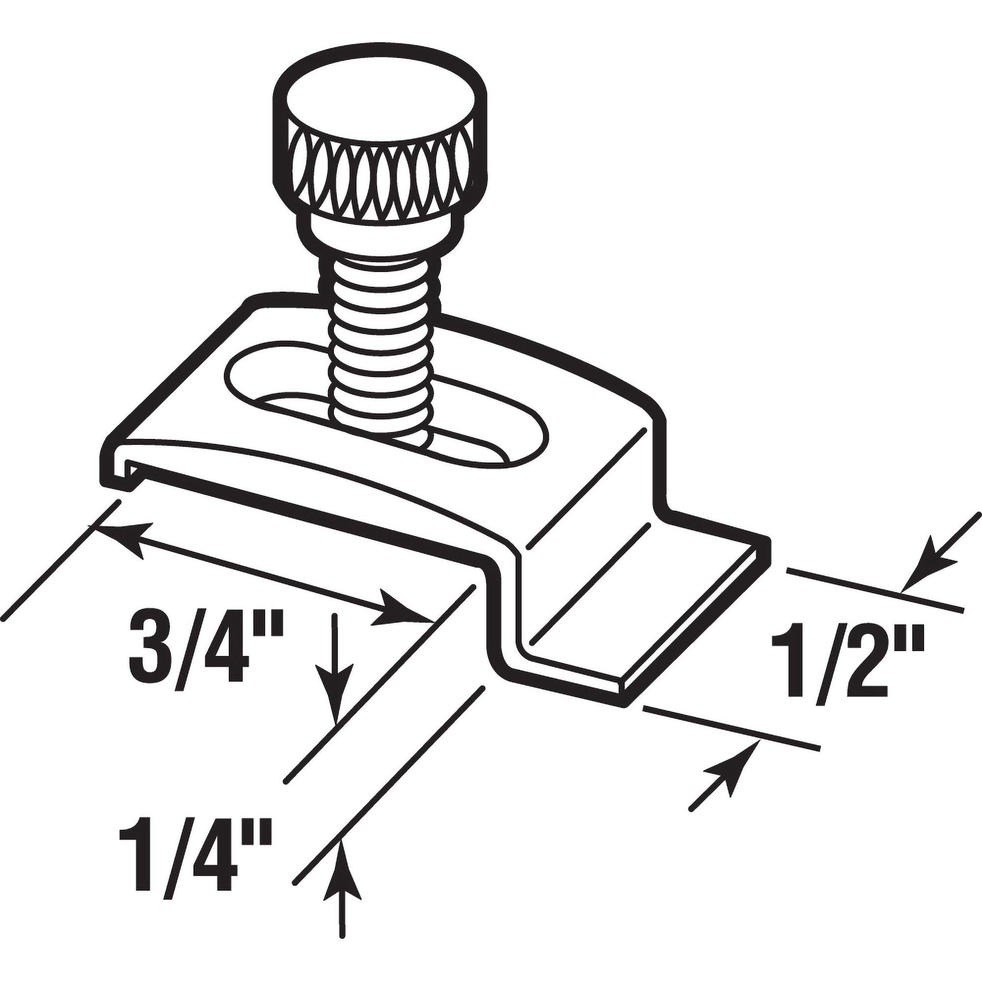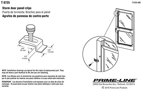 Details: These storm door clips are constructed from aluminum and come painted white. They feature adjustable tension and fit on standard taps. Clips help secure your glass and screen panels to your frame.