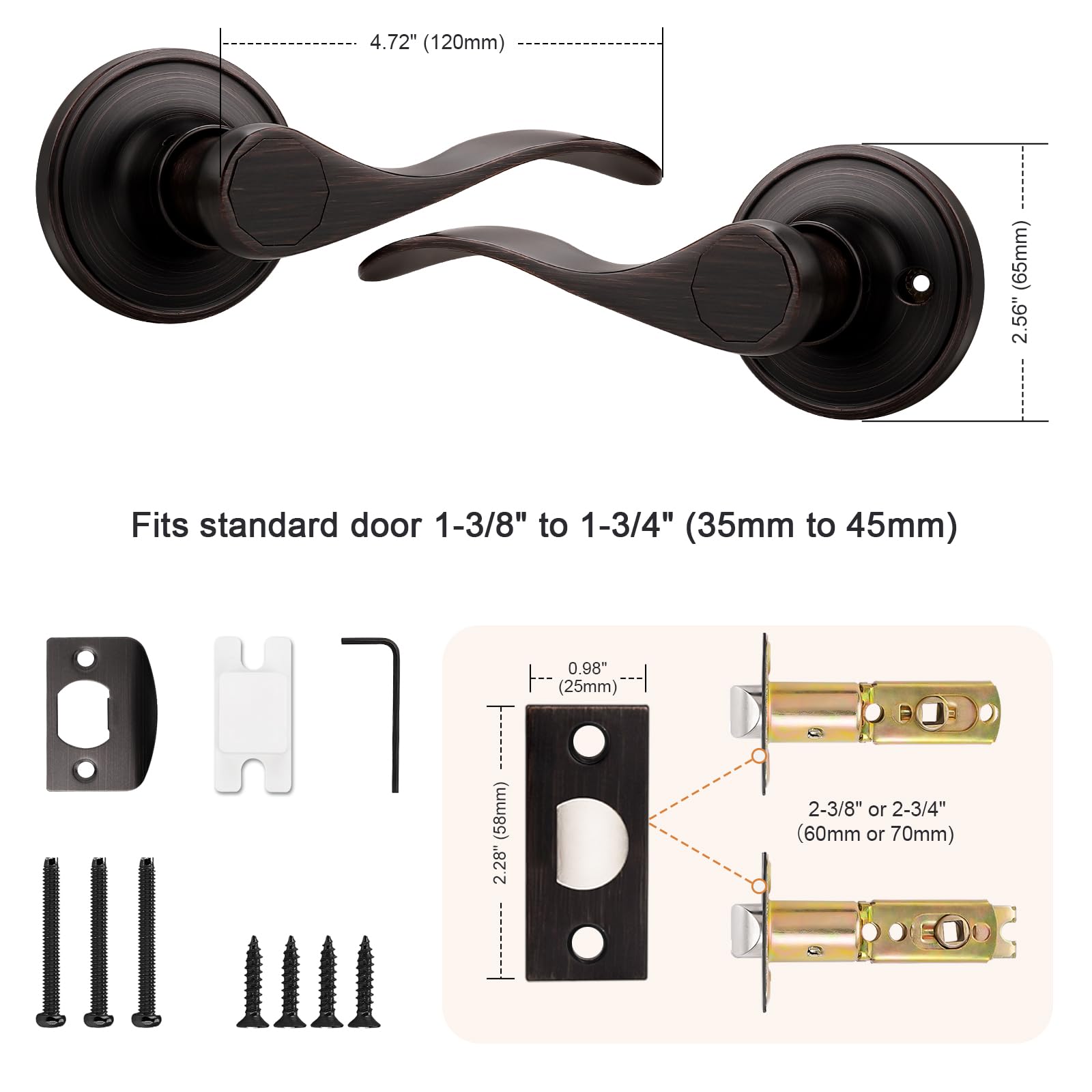 - 【Elegant Design】The oil rubbed bronze door lever is exquisitely designed in a modern style. The wave shape provides a more comfortable gripping experience. High-quality zinc alloy makes the lever wear-resistant, corrosion-resistant, and durable. Confirmed with ANSI Grade 3, exceeds 250,000 cycles.