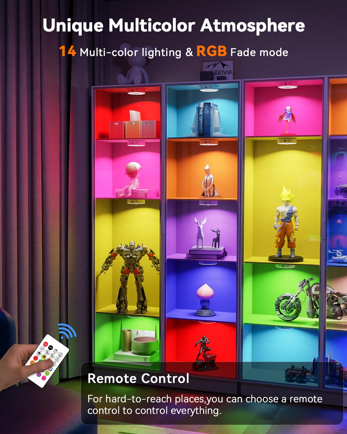 - 12 Multi-Color & 3 Color Temps Puck Lights: These under cabinet lights have 11 solid colors,RGB change mode and 3 color temperatures (3000K/4200K/6500K) can easily create various styles for your display cases. Perfect for cabinet,kitchen,shelving,stairways,basement bar, wine,bedroom,closet,workshop,garage,hallway,storage room,garage,home,walkway,RV exterior lighting. Ideal for DIY enthusiasts seeking flexible, energy-efficient lighting to enhance aesthetics or functionality.