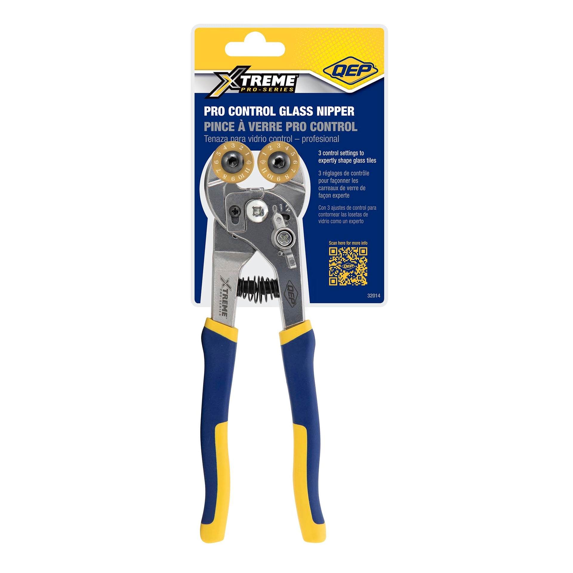 Details: Shape glass tiles and mosaic with the premium QEP XTREME Series Glass Tile Nipper. This tool is designed to be used with most glass and mosaic projects. Easily snip away at pieces up to 5/16 in. thick with tough, titanium coated tungsten carbide cutting wheels to help maintain a cutting edge. 3 Pro Control Settings make this tile nipper easily adjustable for several tiling applications and projects. Compatible with QEP 7/8 in. non ball-bearing cutting wheels