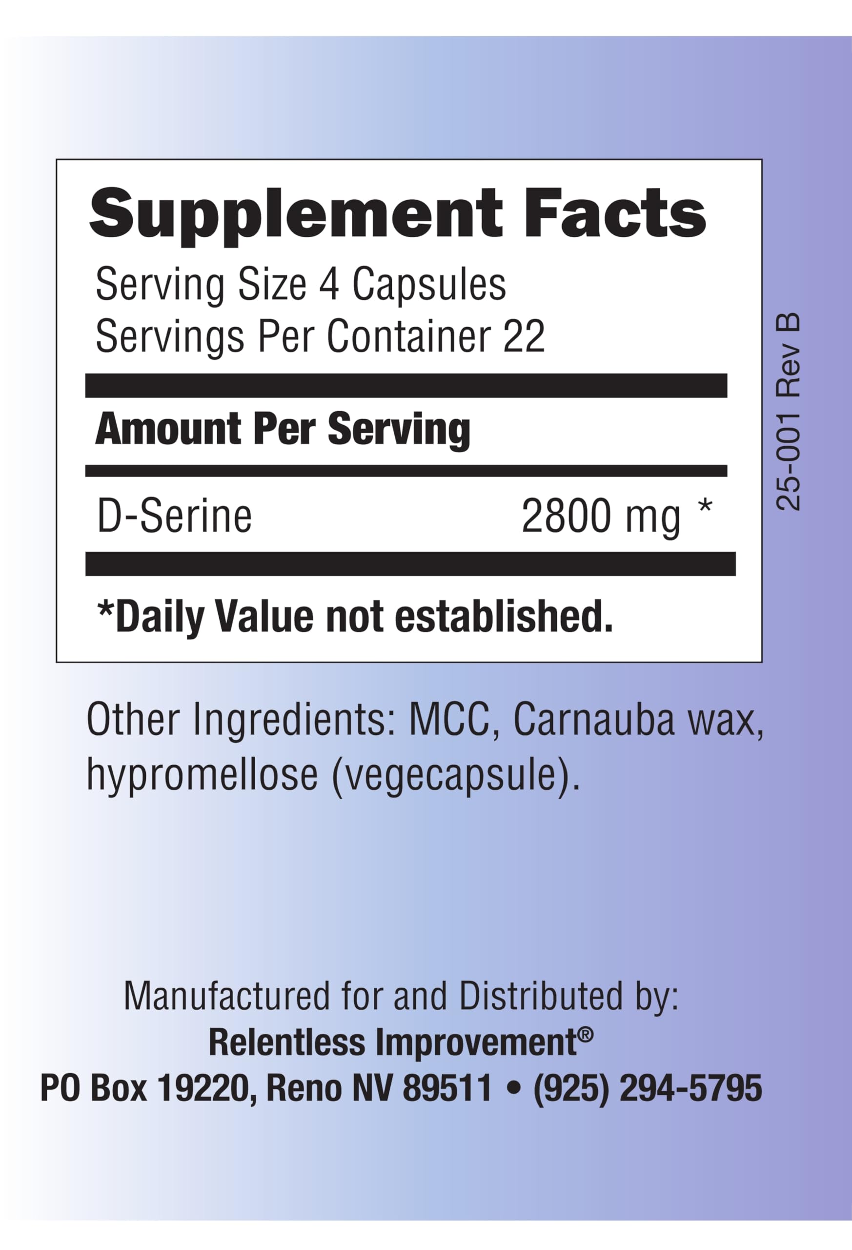 Relentless Improvement D-Serine 700mg - Amino Acid for Cognitive Support, Neuroprotection & Mood, 90 Veg Capsules, No Animal Content