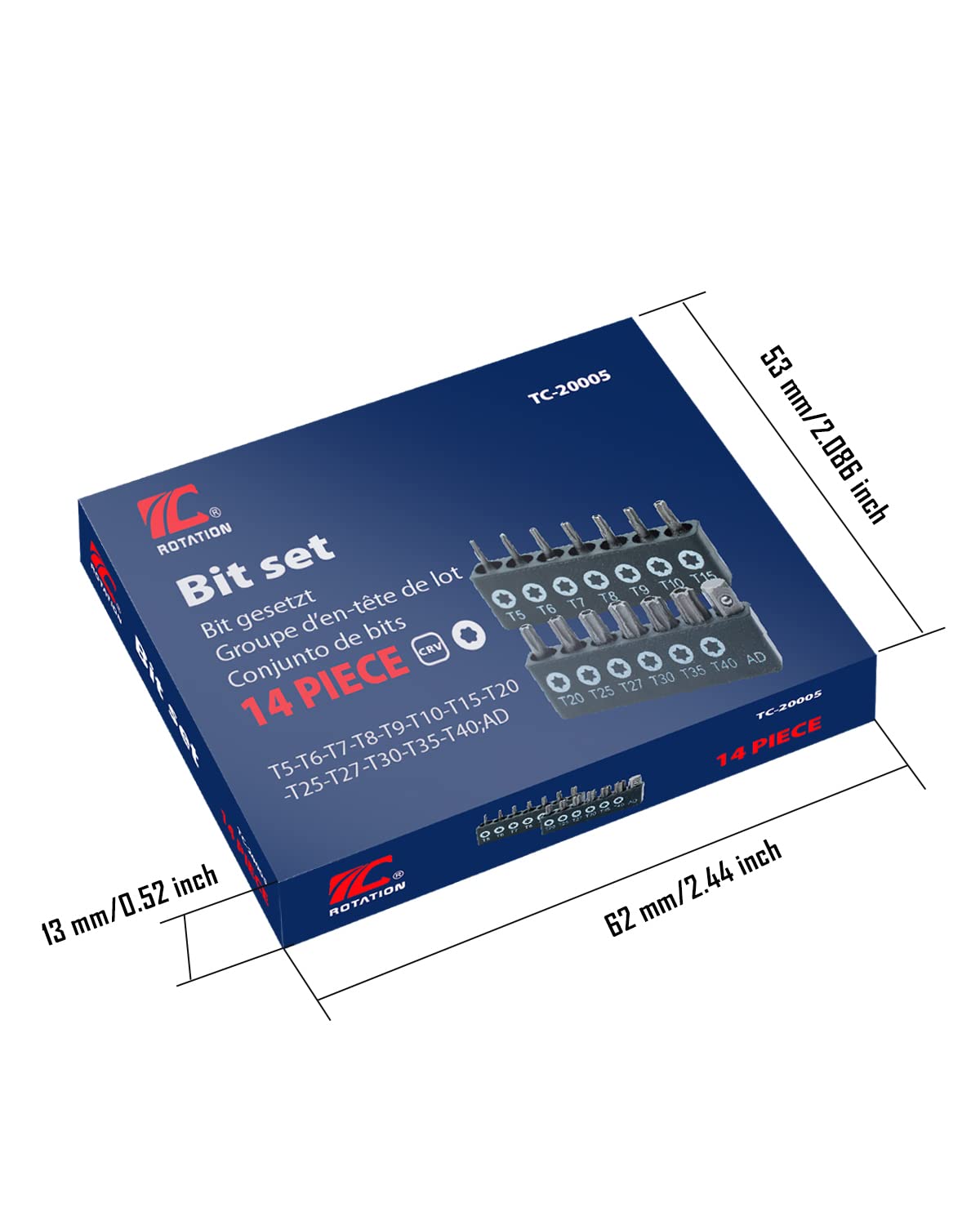 ROTATION 14-Piece Tamper Resistant Star Bits, Chrome Vanadium Steel, T5 - T40 Impact Grade Security Torx Bit Set, 1/4-inch Hex Shank
