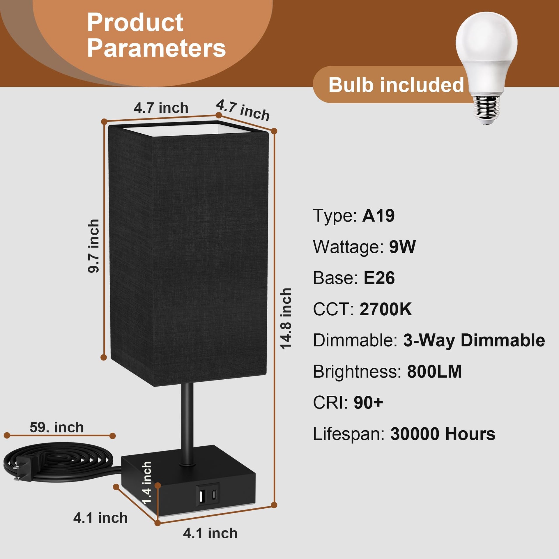- MINIMALIST BEDROOM LAMP: Modern style lamp for bedroom features: black metal base and a square lampshade, which can create a cozy and relaxing atmosphere in your house. Black flax fabric lampshade will make the light soft and protect your eyes to create a comfortable atmosphere. Touch Table Lamp can decor your home, living room, guest room, study reading room, kids room, etc.