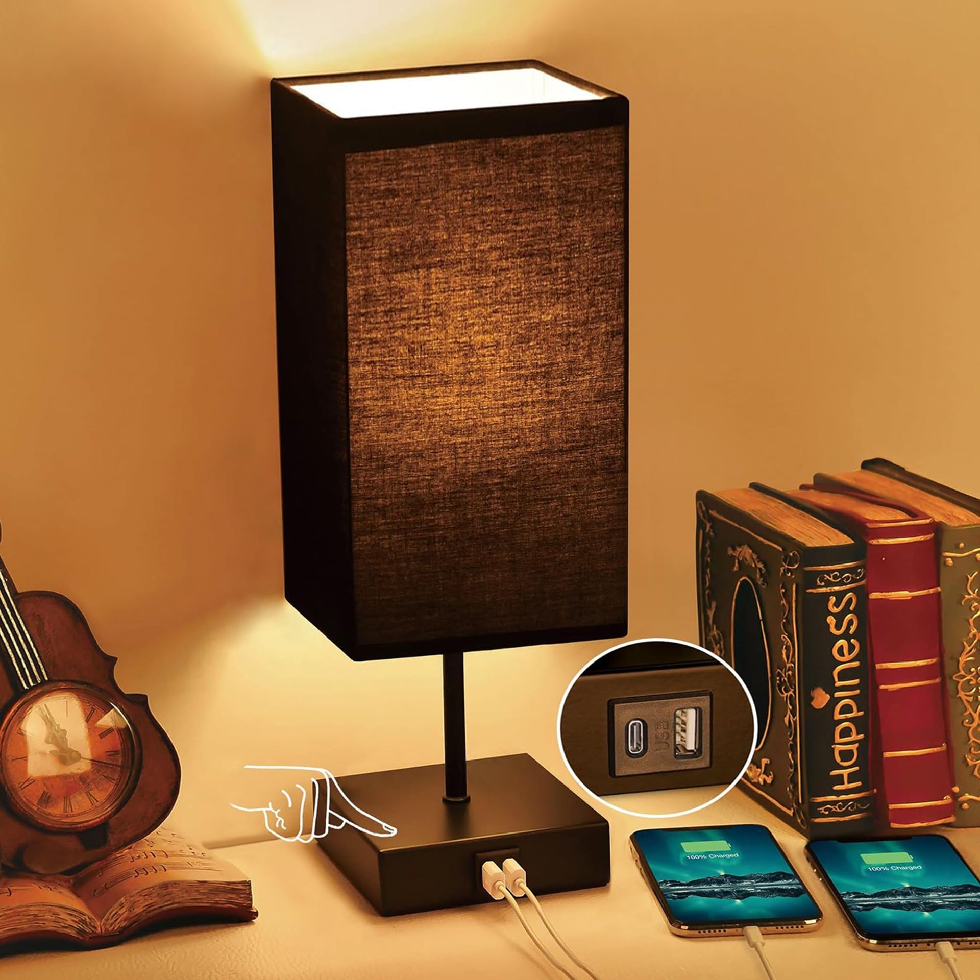 - TABLE LAMP WITH USB: Bedside table lamp with fashion design, it has USB-C & USB-A for charging multiple items. Sailstar functional lamp easy to turn on in the dark, and convenience to find a spot to plug in your phone, which are great additions and makes it worth buying than another simple lamp.