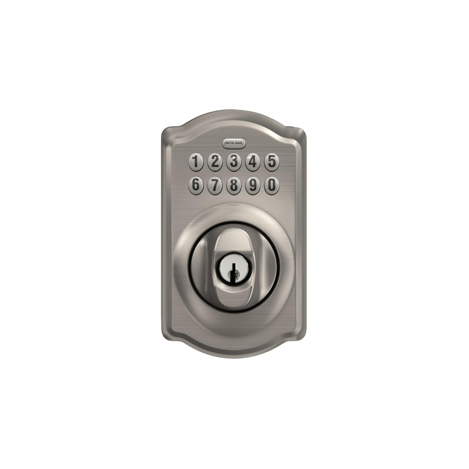 Details: The Schlage Keypad Deadbolt allows you to lock and unlock your door without using a key. Ideal for front and back doors as well as garage entry doors, home offices, this electronic deadbolt provides security and simplicity for the entire home. Silicone rubber, wear-resistant buttons with LED backlight make access safe and easy. Trust your home to Schlage, makers of high-quality, innovative door hardware for over 100 years.
