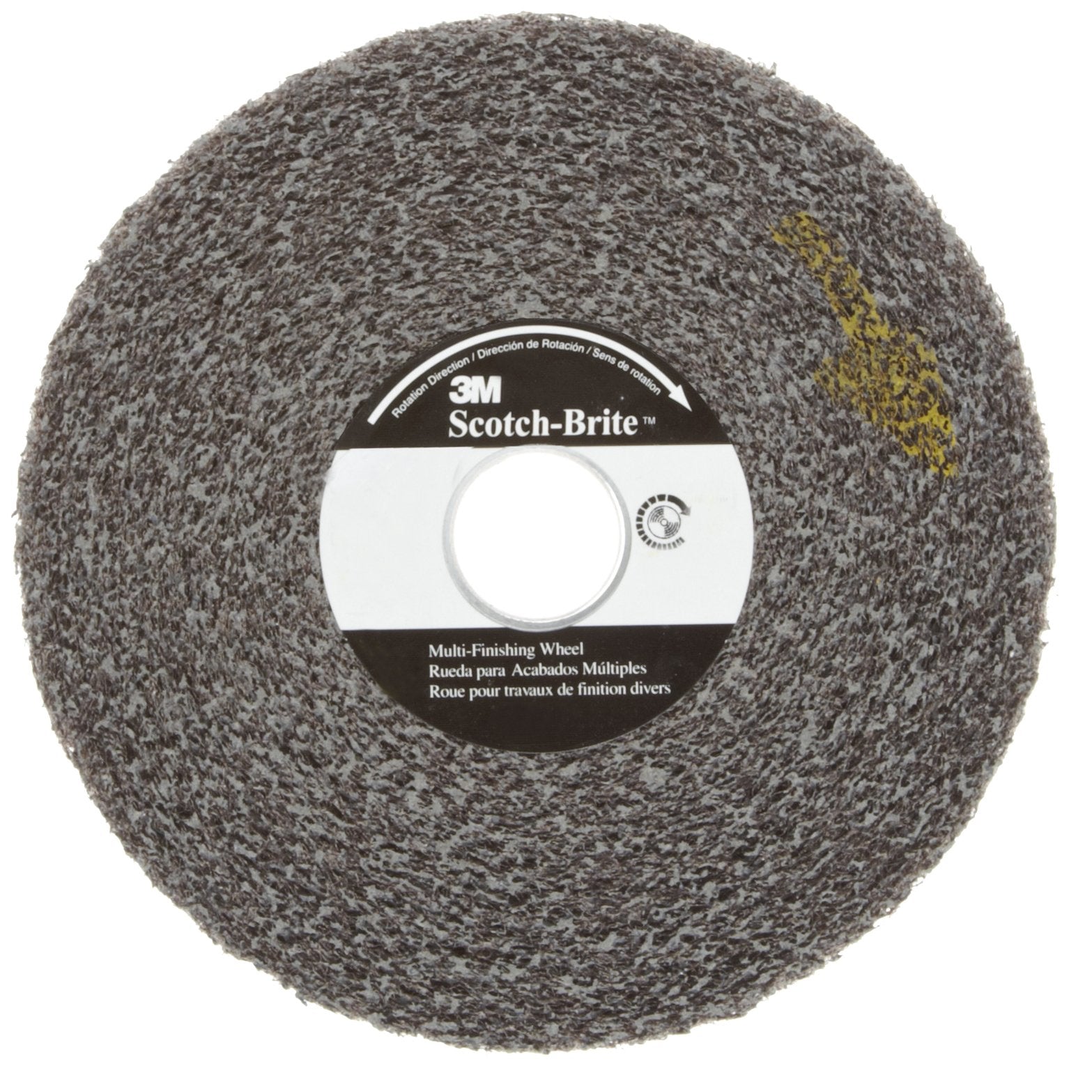 The Scotch-Brite™ Multi-Finishing Wheel uses silicon carbide abrasive. Silicon carbide is a synthetic mineral that is very sharp and commonly used for low-pressure applications such as paint prep. While it breaks down faster than aluminum oxide, it produces a superior finish.