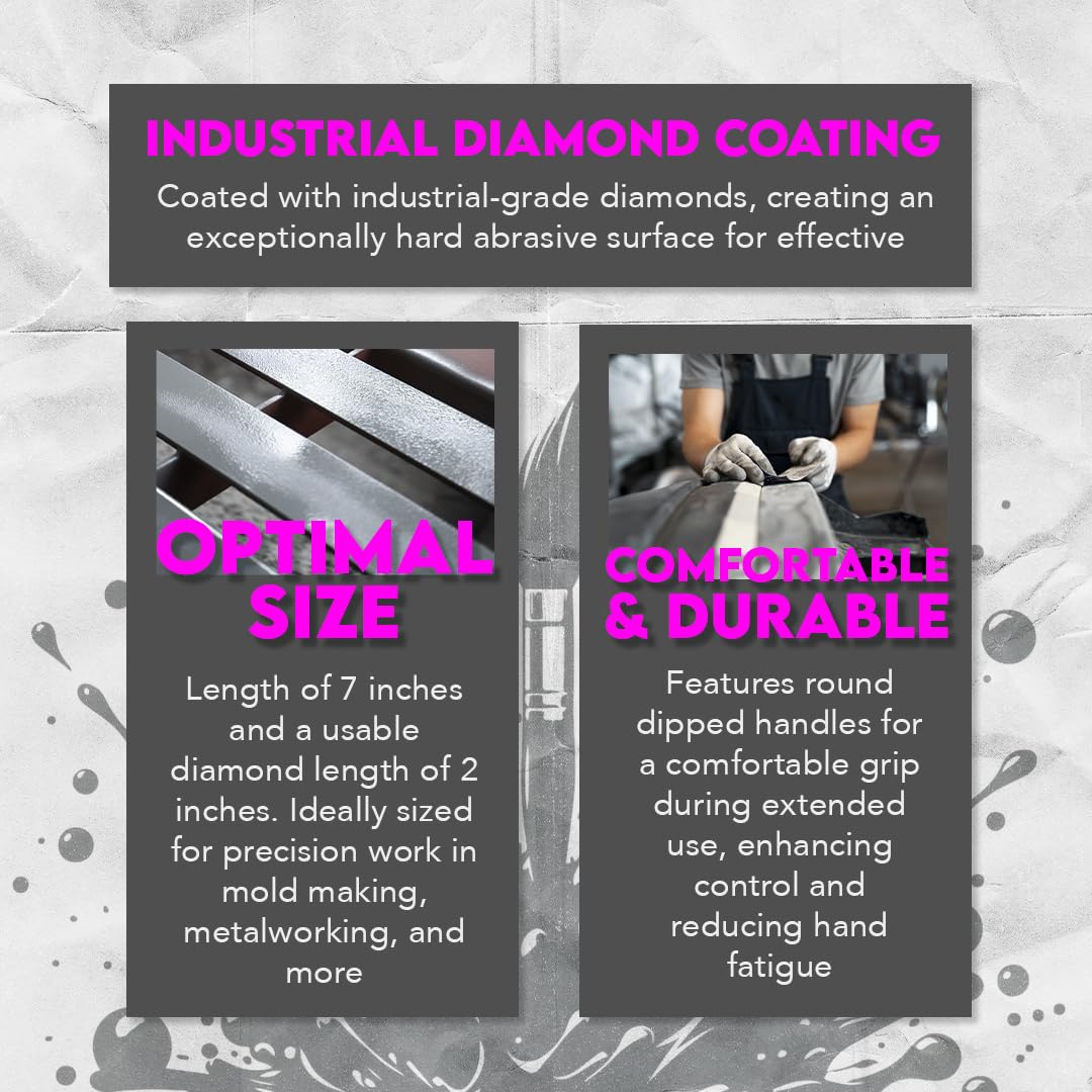 - Optimal Size for Detailed Work: With a total length of 7 inches and a usable diamond length of 2 inches, these files are ideally sized for precision work in mold making, metalworking, and more