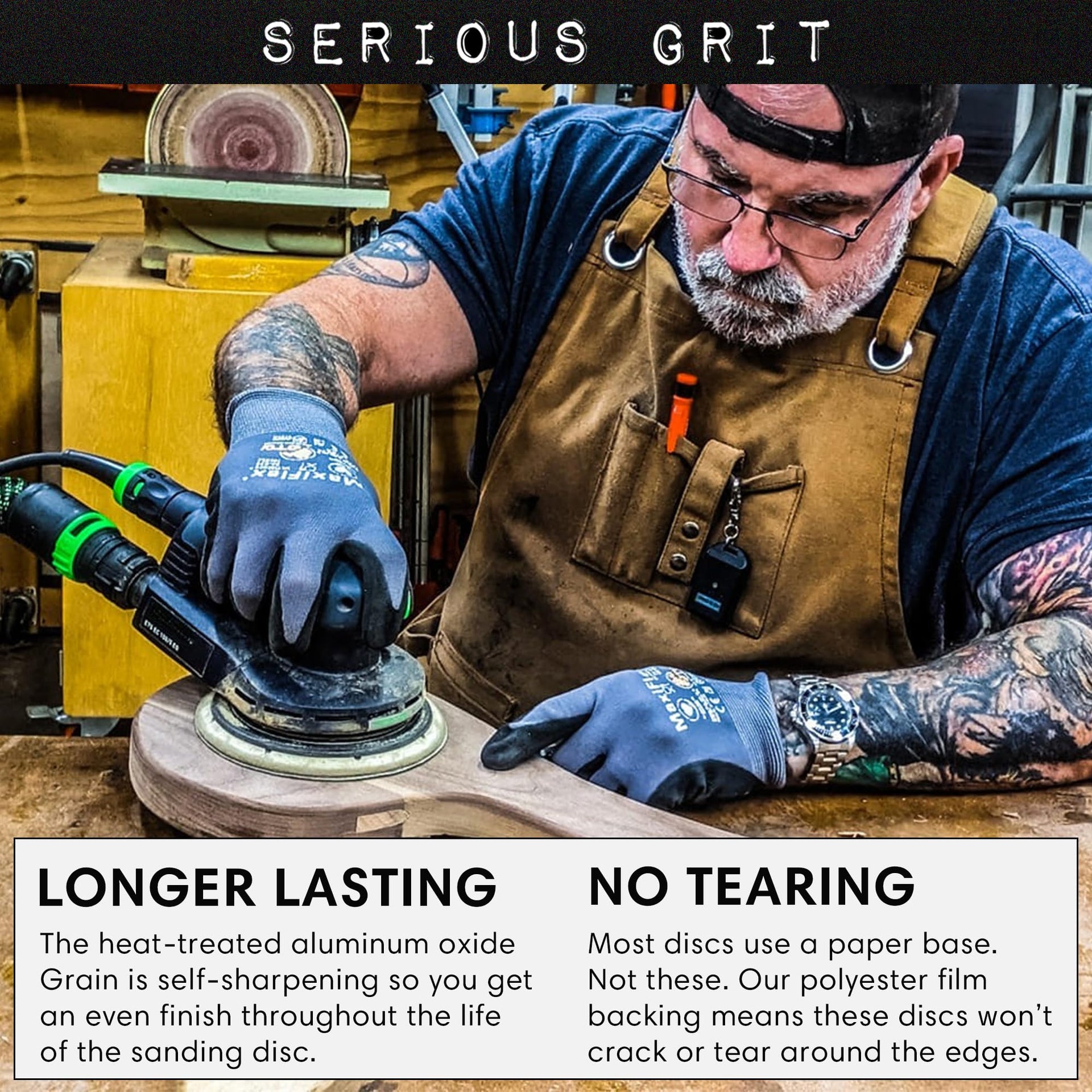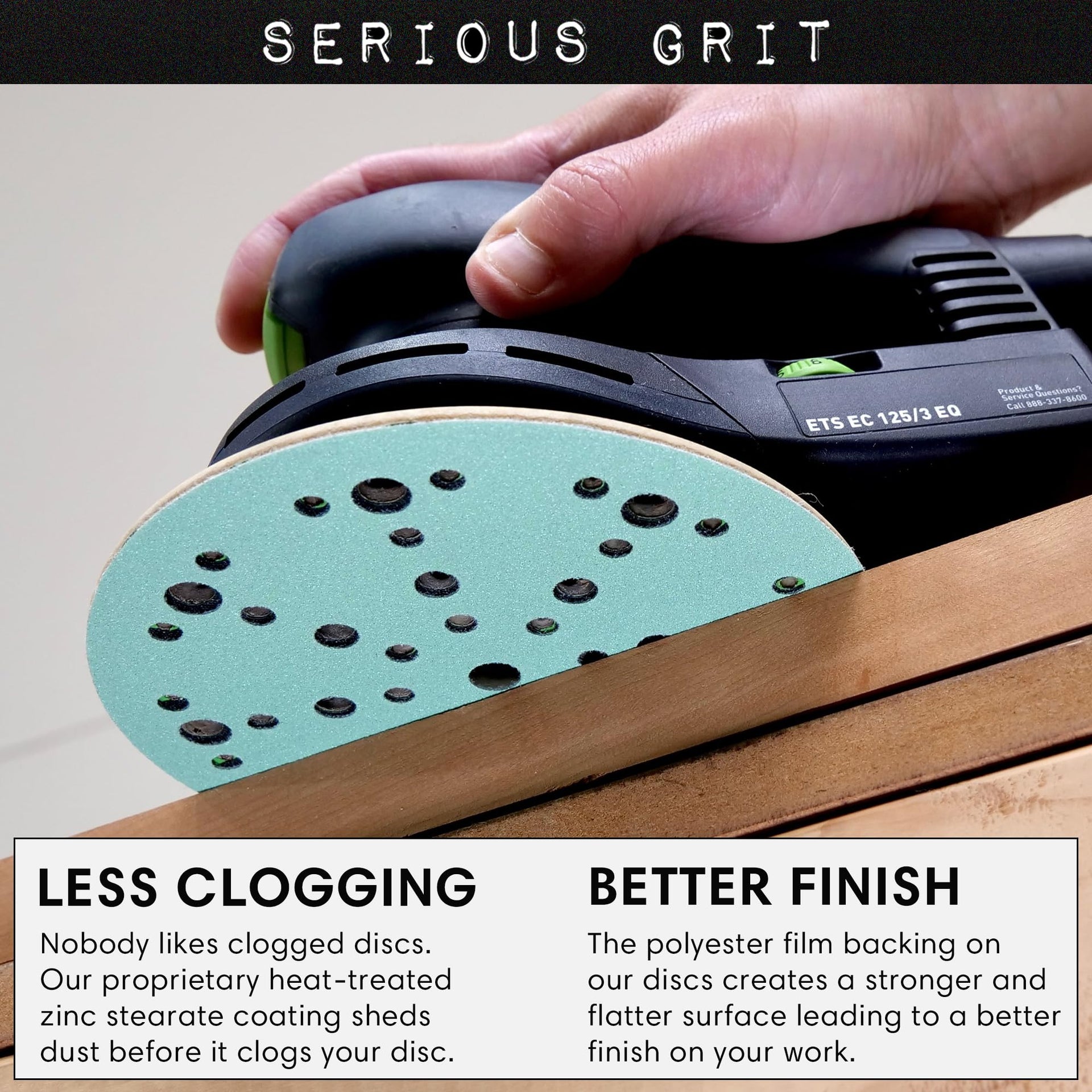 Serious Grit - 6-Inch 49-Hole 80 Grit Sanding Discs - Heavy-Duty Hook & Loop Film Discs - Sandpaper for Random Orbital Sanders - 50 Pack Box