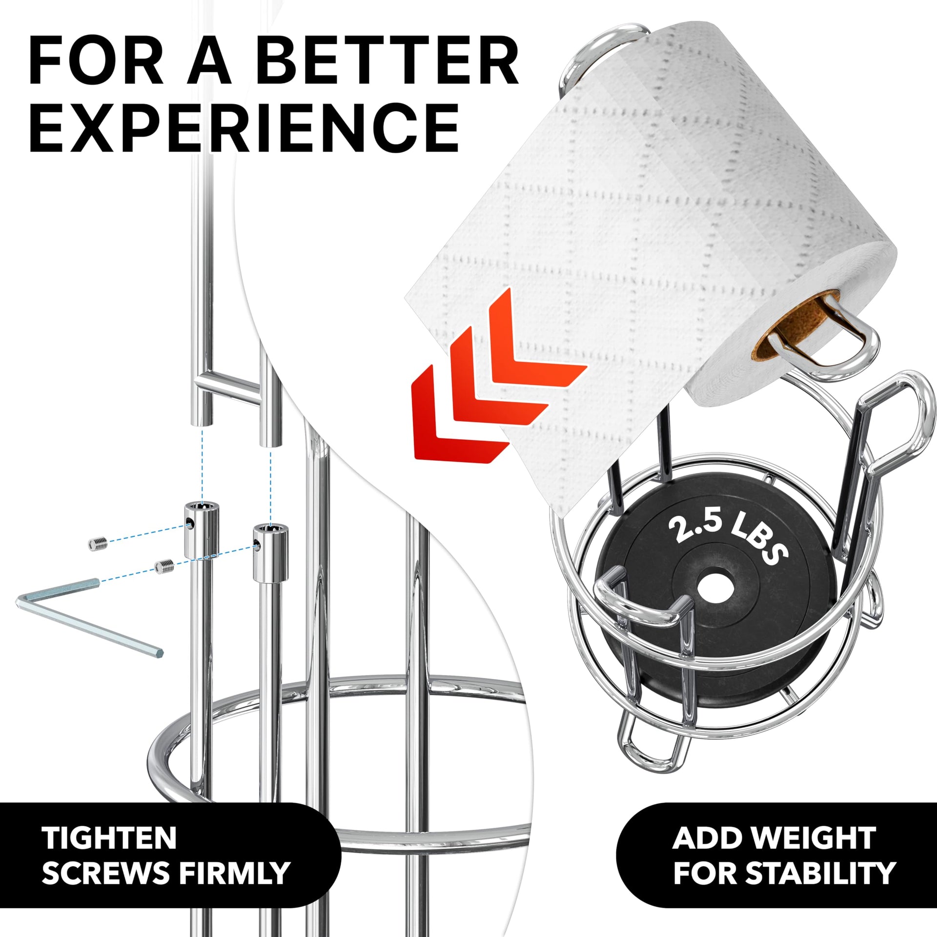 - Fits Rolls of All Roll Sizes: Holds standard, double, and mega household rolls up to 5.5" in diameter