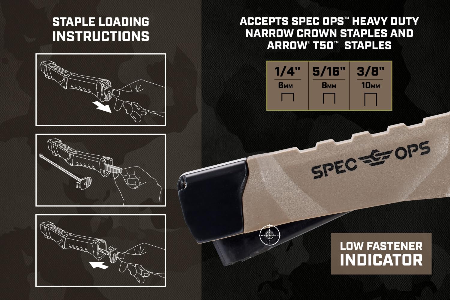 Spec Ops Tools Heavy Duty Hammer Tacker, 1/4", 5/16" or 3/8" Staples, Metal Strike Cap, 3% Donated to Veterans