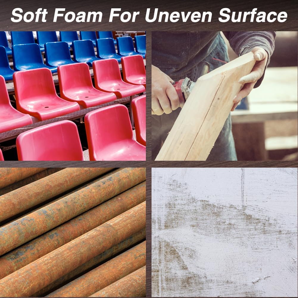 - 【SOFT FOAM】 Constructed of soft sponge, suitable for uneven surface polishing. Protecting against damage to backing pad and adding support to disc pad for improved abrasive cut and closer edge sanding.