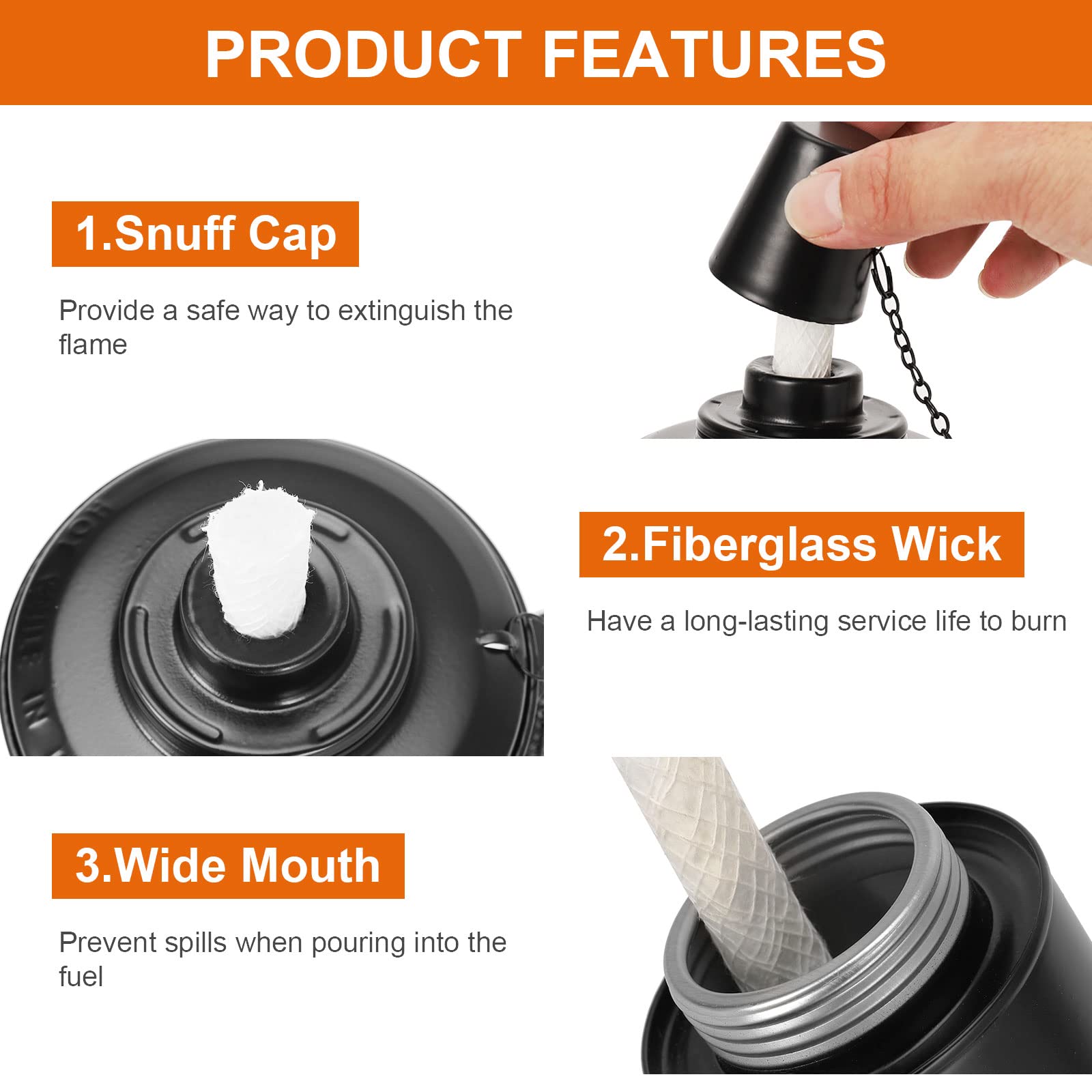 - 【Included Fiberglass Wicks】 - Compared to cotton wick, fiberglass wick can last indefinitely with normal use because its not "burned" unlike cotton. It also can make sure the fuel canister is not contaminated with water and use high quality torch fuel.Saving you hassle and money!