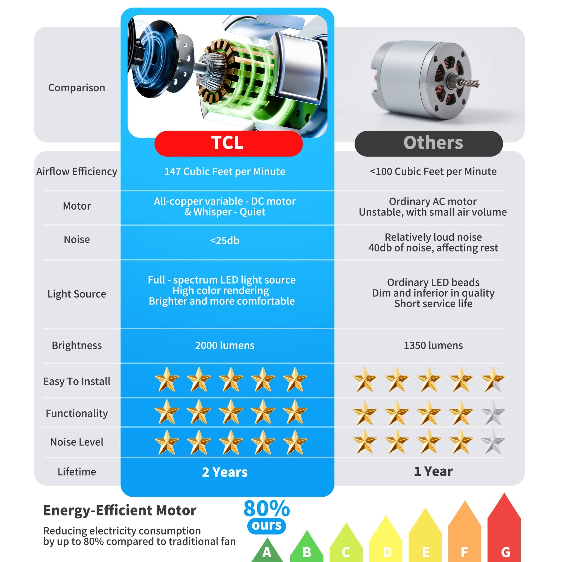- BUY WITH CONFIDENCE | 2-YEAR WARRANTY & DEDICATED SUPPORT Your satisfaction is our unwavering commitment. We stand proudly behind our quality with a comprehensive 2-Year All-Inclusive Warranty that covers your entire ceiling fan. Have a question or need assistance during installation or use? Our dedicated customer support team is on standby to provide fast, friendly, and effective solutions. Trust TCL for superior quality and reliable performance.
