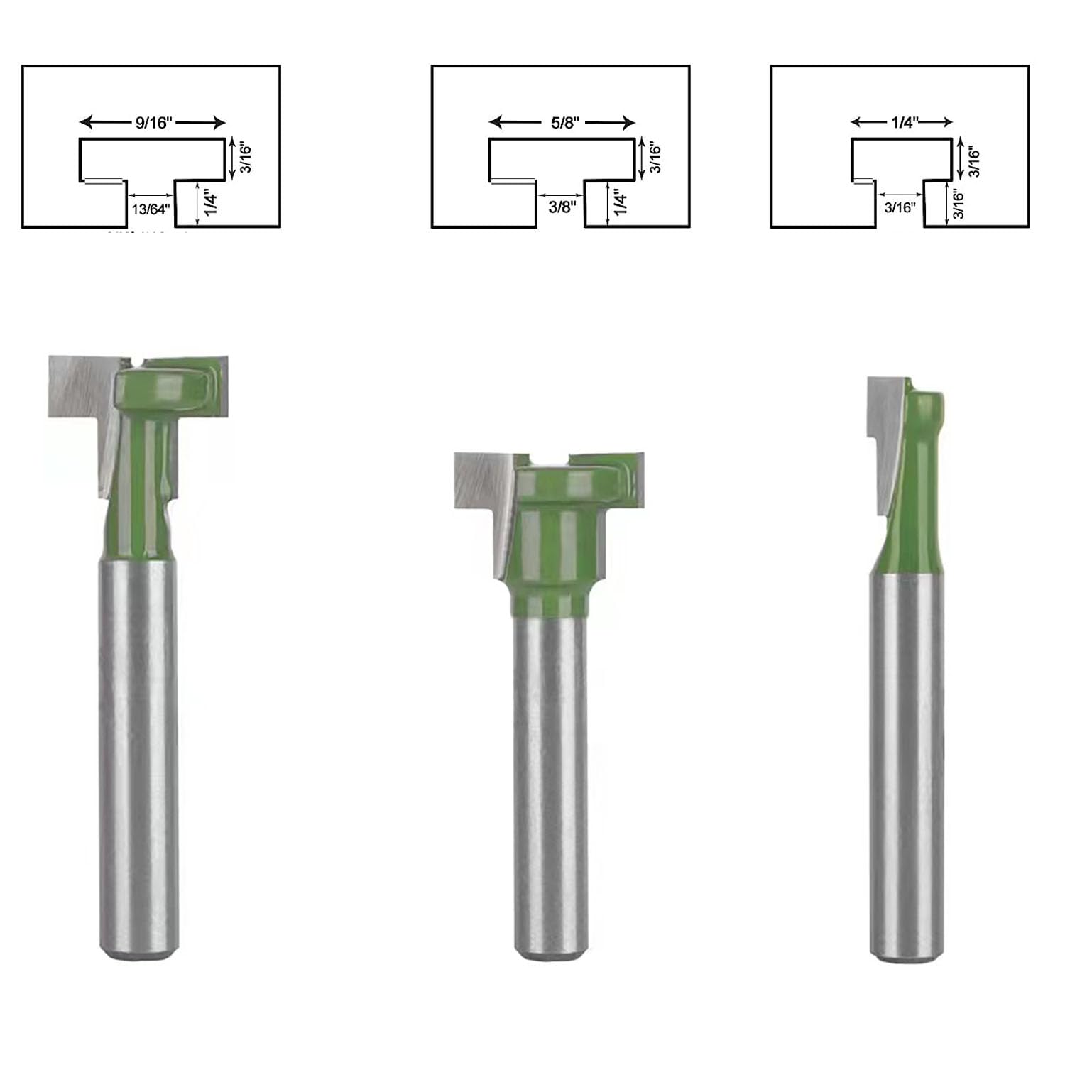 - TOTOWOOD 6pcs 1/4 inch shank keyhole router bit set , 1/4, 5/16 , 3/8, 9/16, 1/2, 5/8 inch in blade diameter.for wood hex bolt T-track slotting milling cutters set