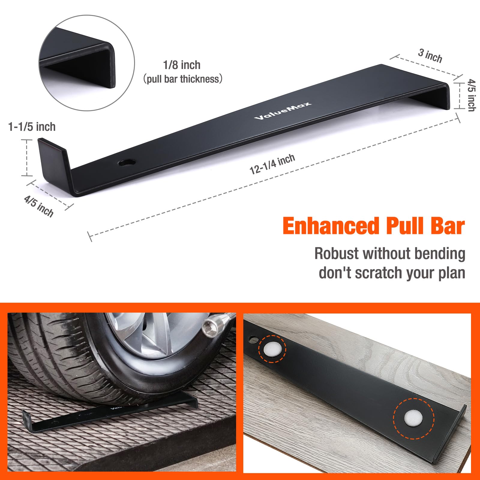- PULL BAR STURDY WITHOUT BENDING: Extra thick strength steel pull bar with matt coating and designed with enhanced strength and corrosion resistance. The pull bar is 12-1/4 inch long and 1/8 inch thick, which is superior to the normal design. Pull bar designed with a 3'' wide front edge and felt pads at the back help to prevent damaging and scratching your plank during installation