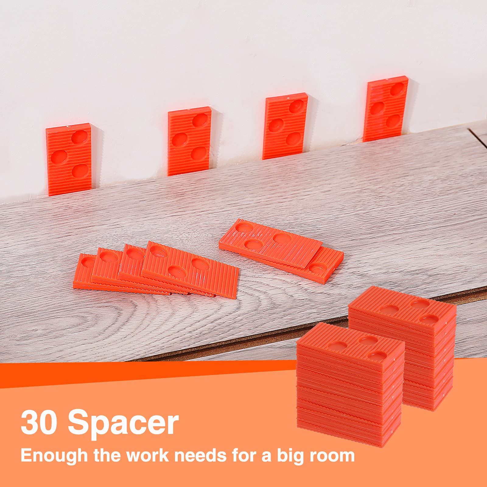 - AFFORDABLE FLOORING INSTALLATION KIT: 1x Reinforced Double-Faced Mallet, 1x Heavy Duty Pull Bar, 1x Tapping Block, 2x Foam Kneepads, and 30-Piece Spacers. The kit is perfect for domestic and professional use for laminate wood flooring or hardwood flooring. An ideal installation tool for your hardwood or laminate wood flooring