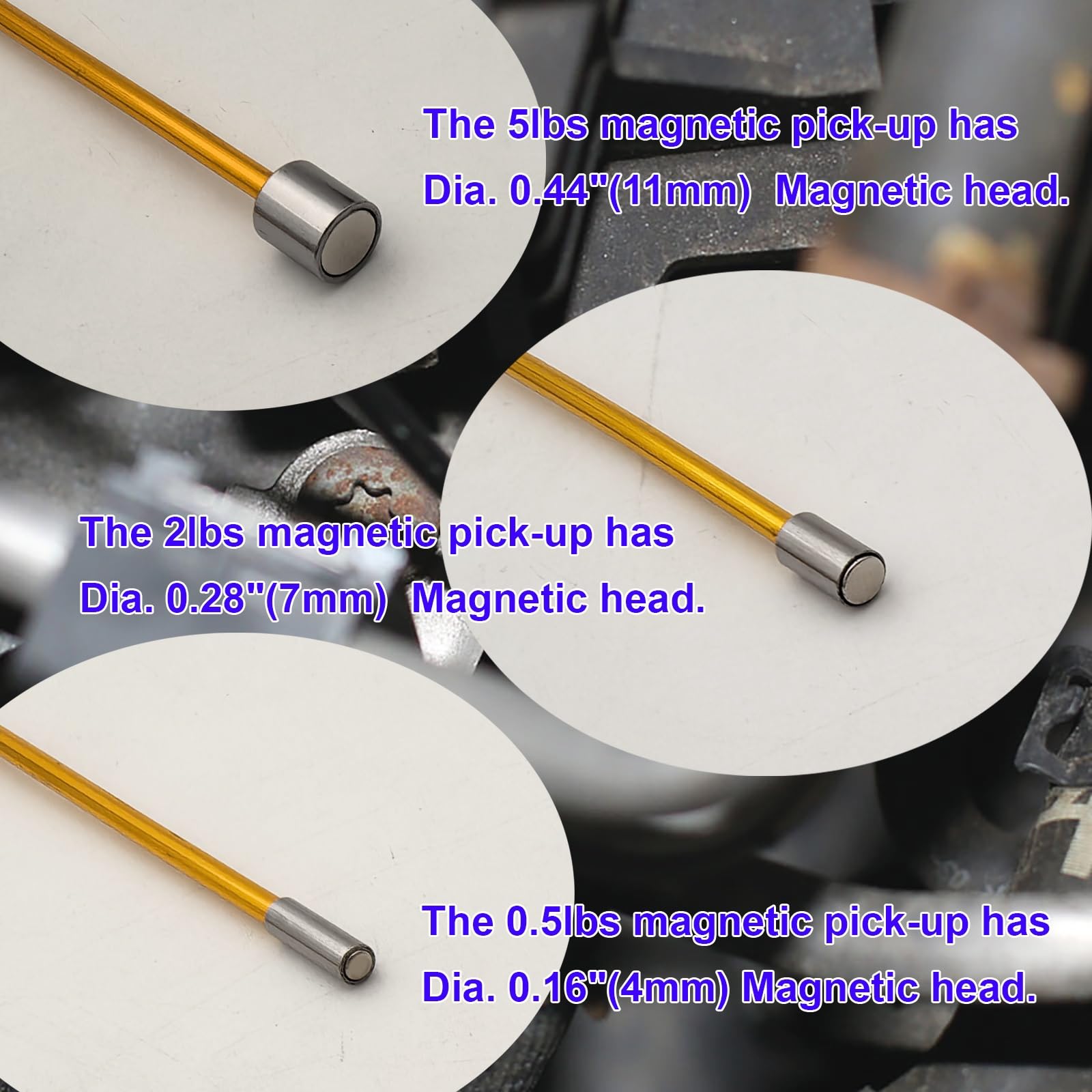 - Extremely small magnetic head,0.5LB with 4mm magnetic head,2LB with 7mm magnetic head,5LB with 11mm magnetic head