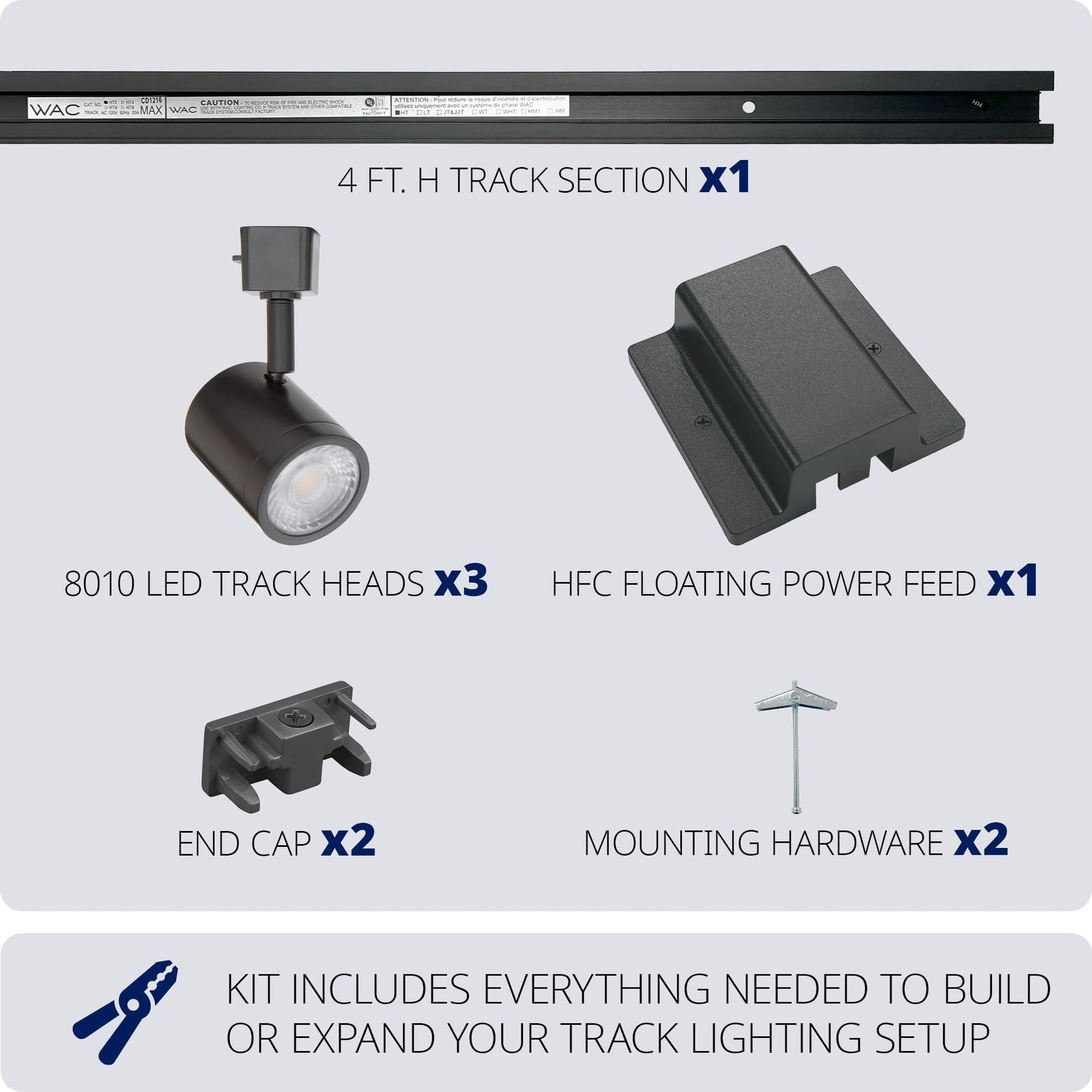 **WAC Lighting Charge 8010 LED 3-Light Track Kit, 27W, 4ft Track, Floating Canopy Feed, 5-CCT Selectable, Dimmable, White**
