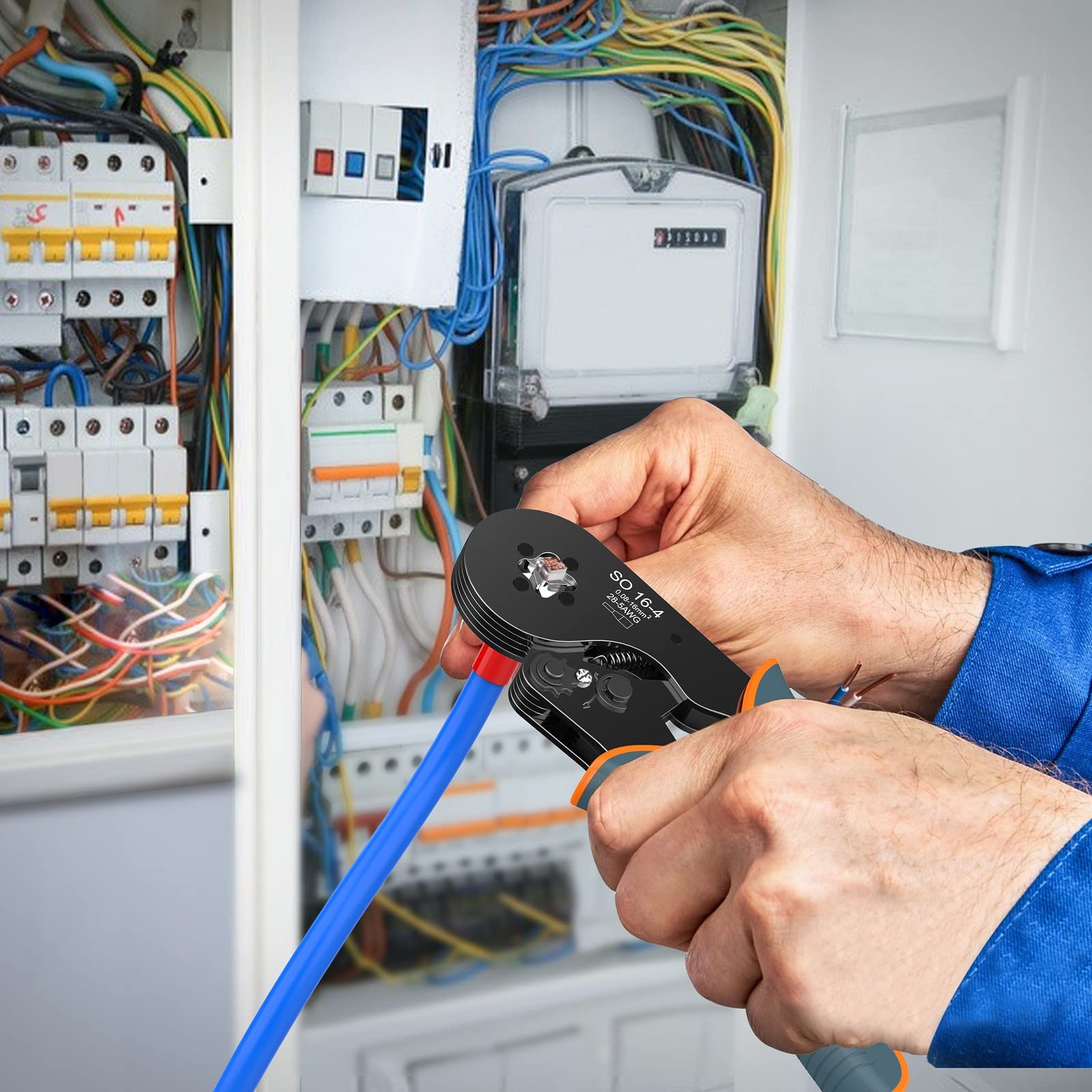 Preciva Wire Ferrule Crimping Tool, Square Jaw Pliers AWG 28-5, Self-Adjustable Ratchet Crimper for Terminals & Cable End-Sleeves