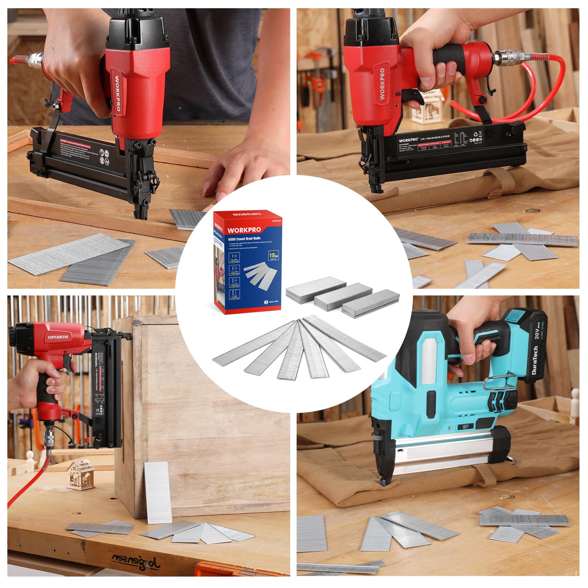 WORKPRO 18 Gauge Brad Nails, 2'',1-1/2'',1-1/4'', 3/4'' 6000 Count Universal Brad Nails for Pneumatic, Electric Brad Nailer