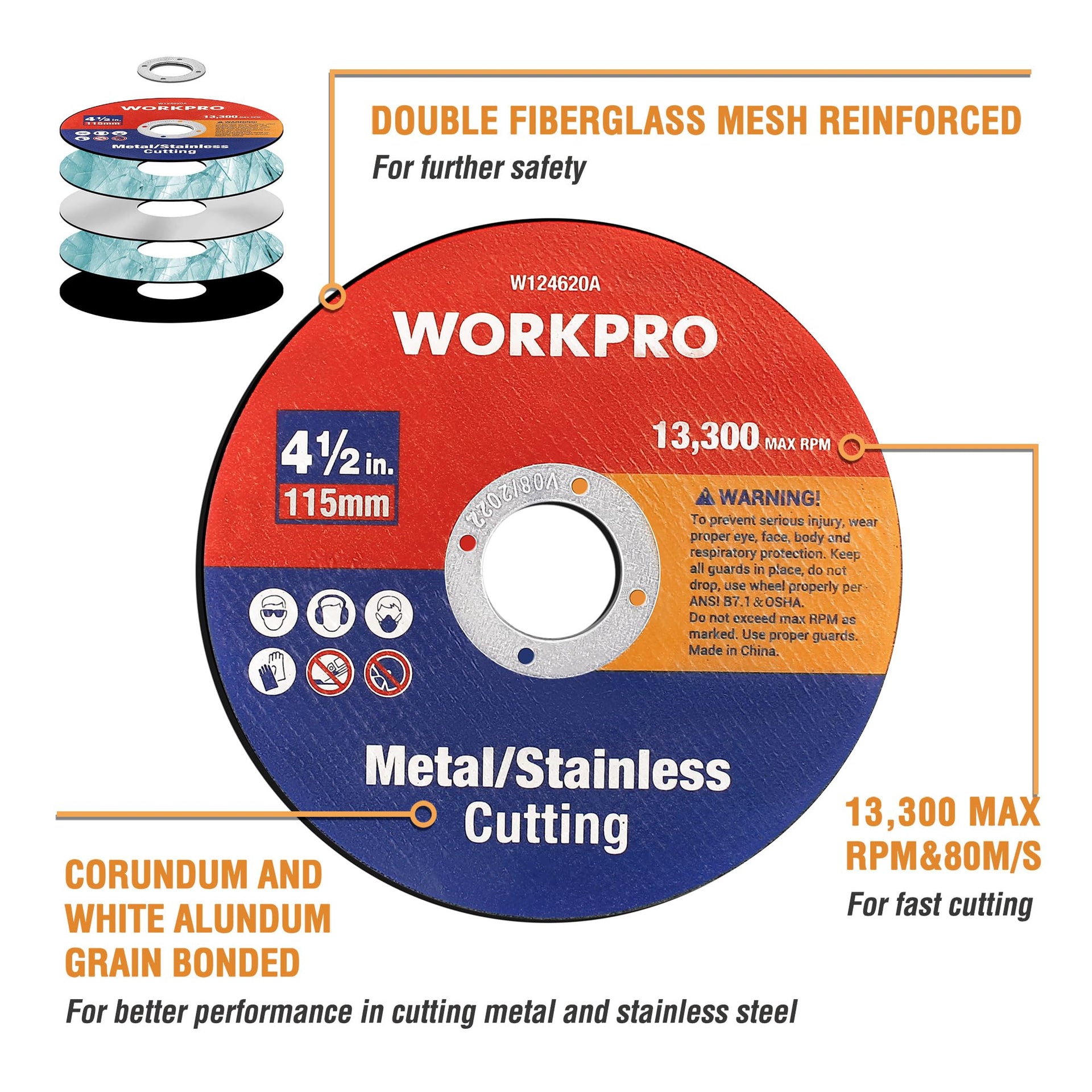 - Safe but Durable Material: Bonded with corundum and white alundum grain and reinforced by double fiberglass mesh, these cutting discs perform much more aggressive cutting in metal and stainless with safety and longer service life