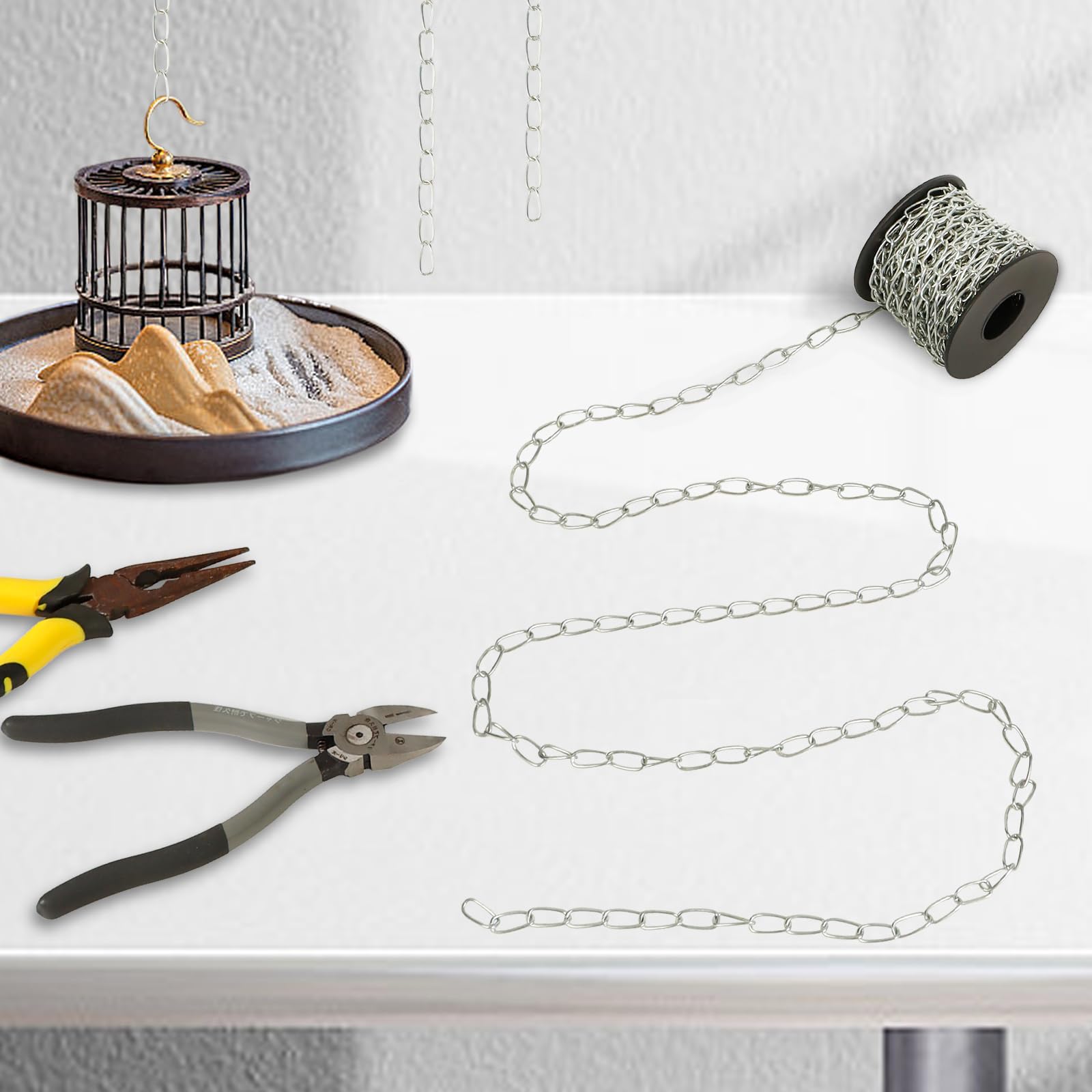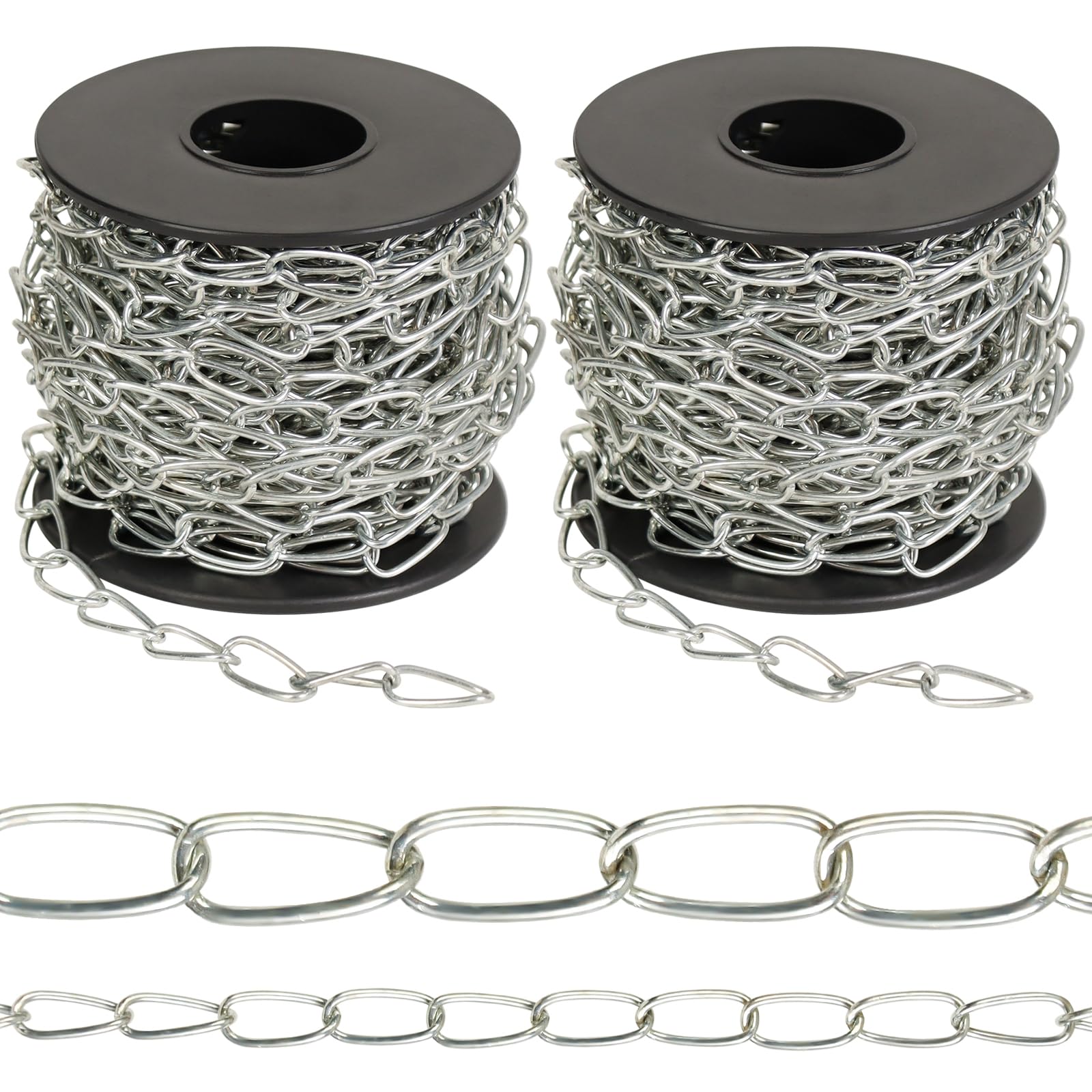 WUBOECE 2-Pack 60Ft Galvanized Iron Jack Chain, 16mm x 18m Metal Link for Hanging Plants, Bird Feeders, Lights – Silver