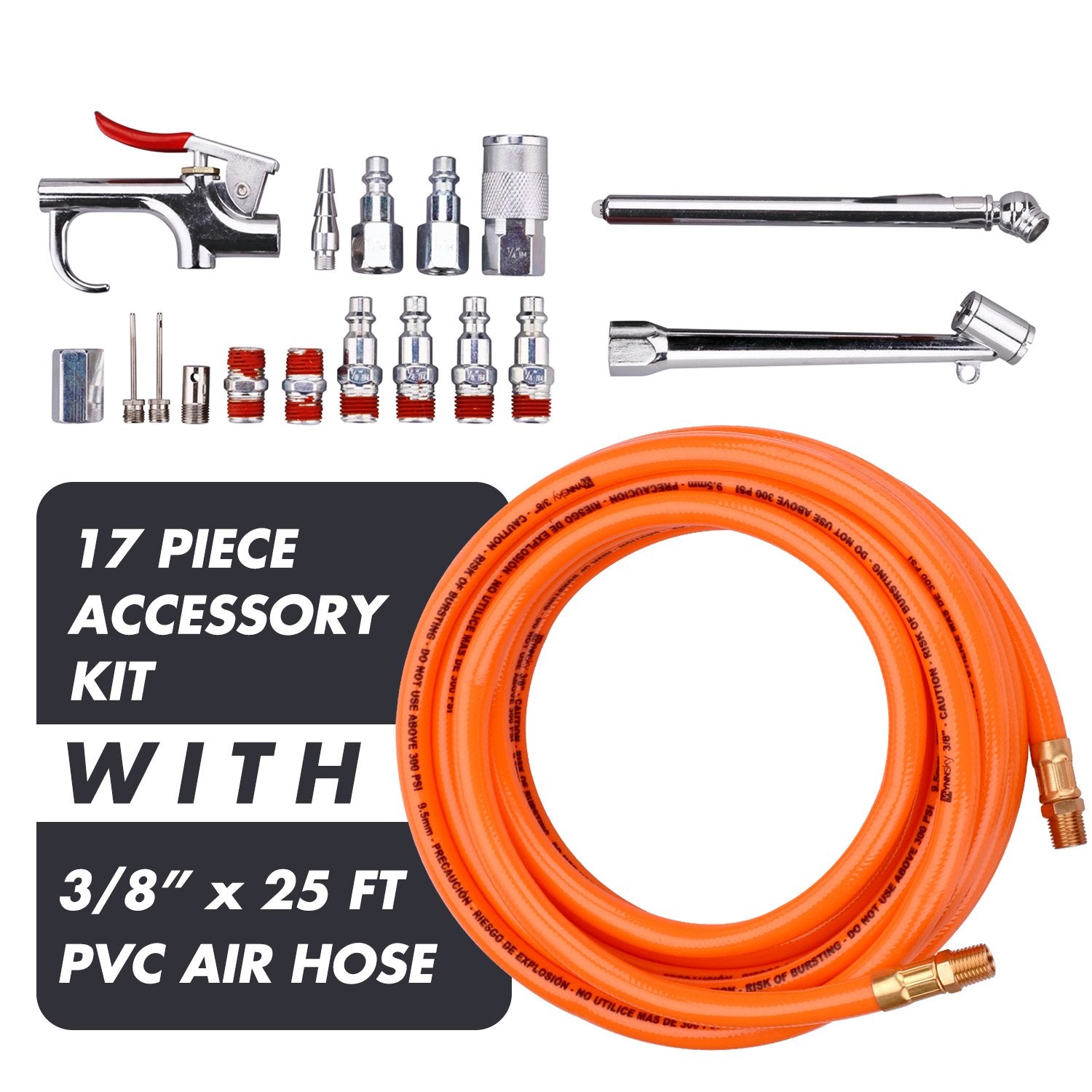 WYNNsky 3/8" X 25ft PVC Air Compressor Hose Kit With 17 Piece Air Tool and Air Compressor Accessories Kit