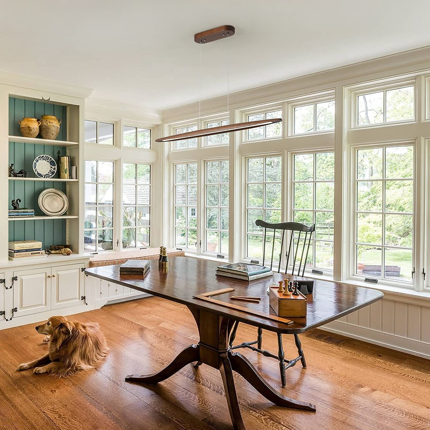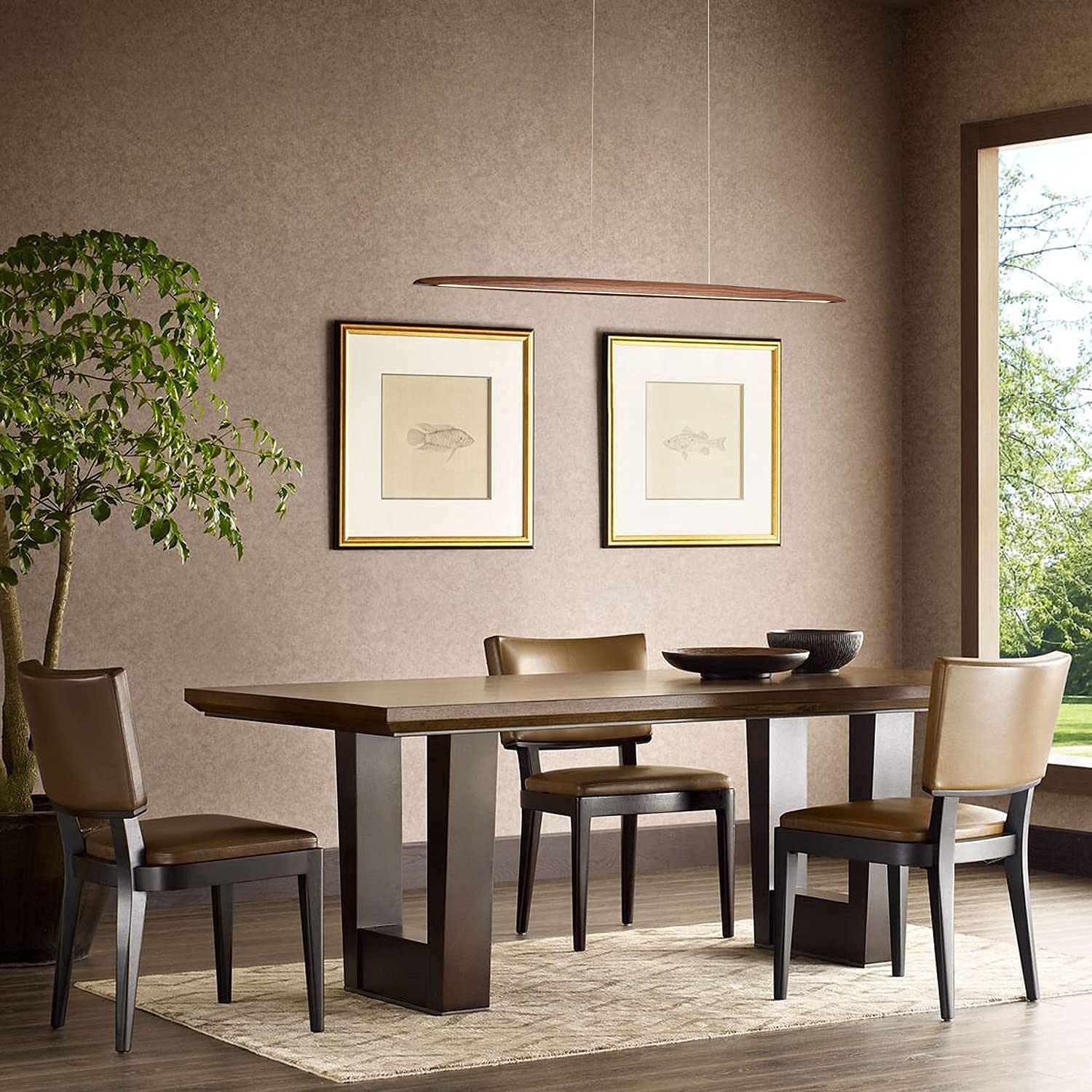 **YISDESIGN 39" Wood Linear LED Pendant Light, Dimmable 24W Hanging Island Fixture for Dining Room, Kitchen, Bar, Walnut Finish**